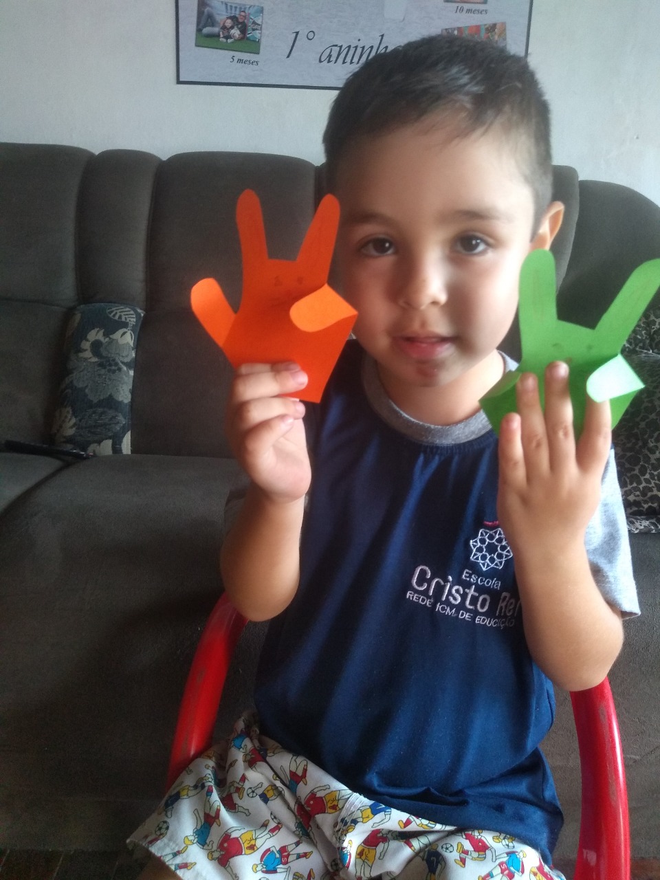 Os pequenos do Pré 1, com a temática da Páscoa, vivenciaram na construção dos símbolos o verdadeiro sentido desta data, renovando o sentimento de amor ao próximo partilhando entre eles desenhos feitos com a temática. E é claro não faltou a culinária doce tão esperada por eles!!!