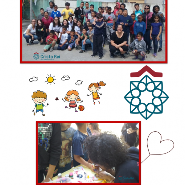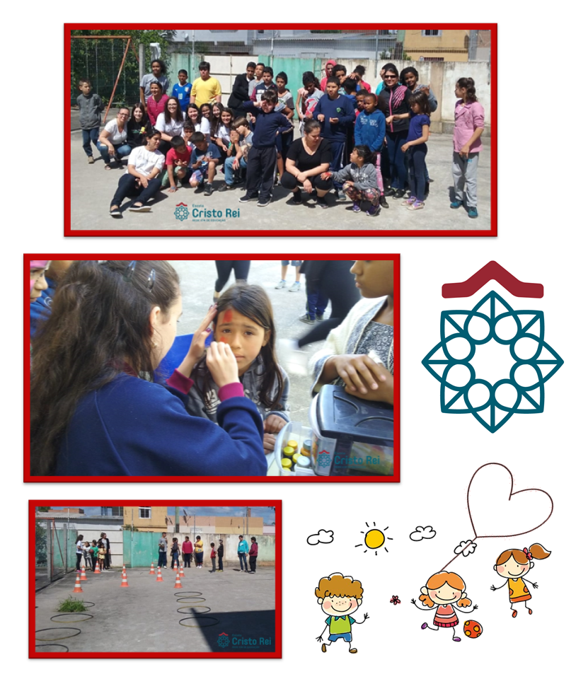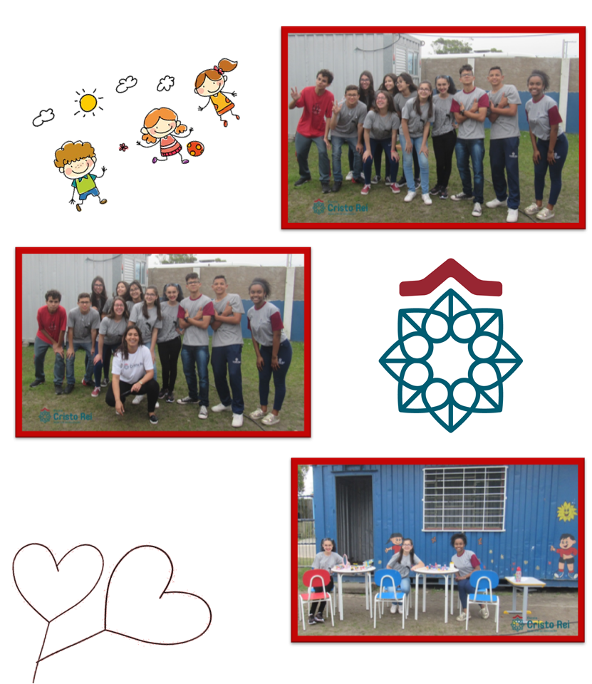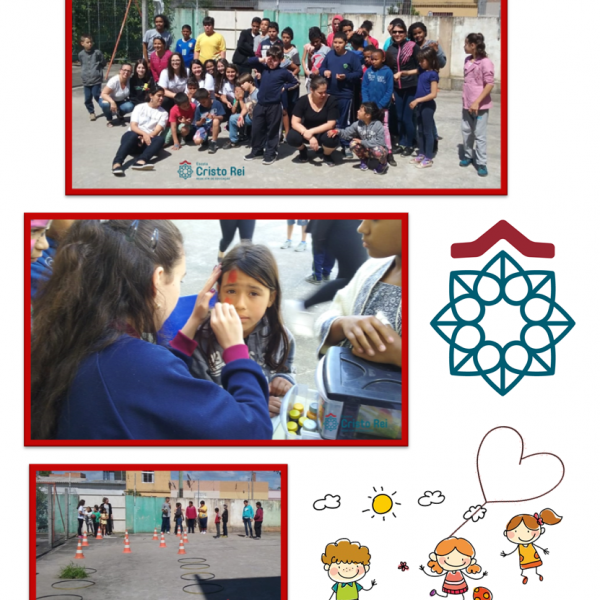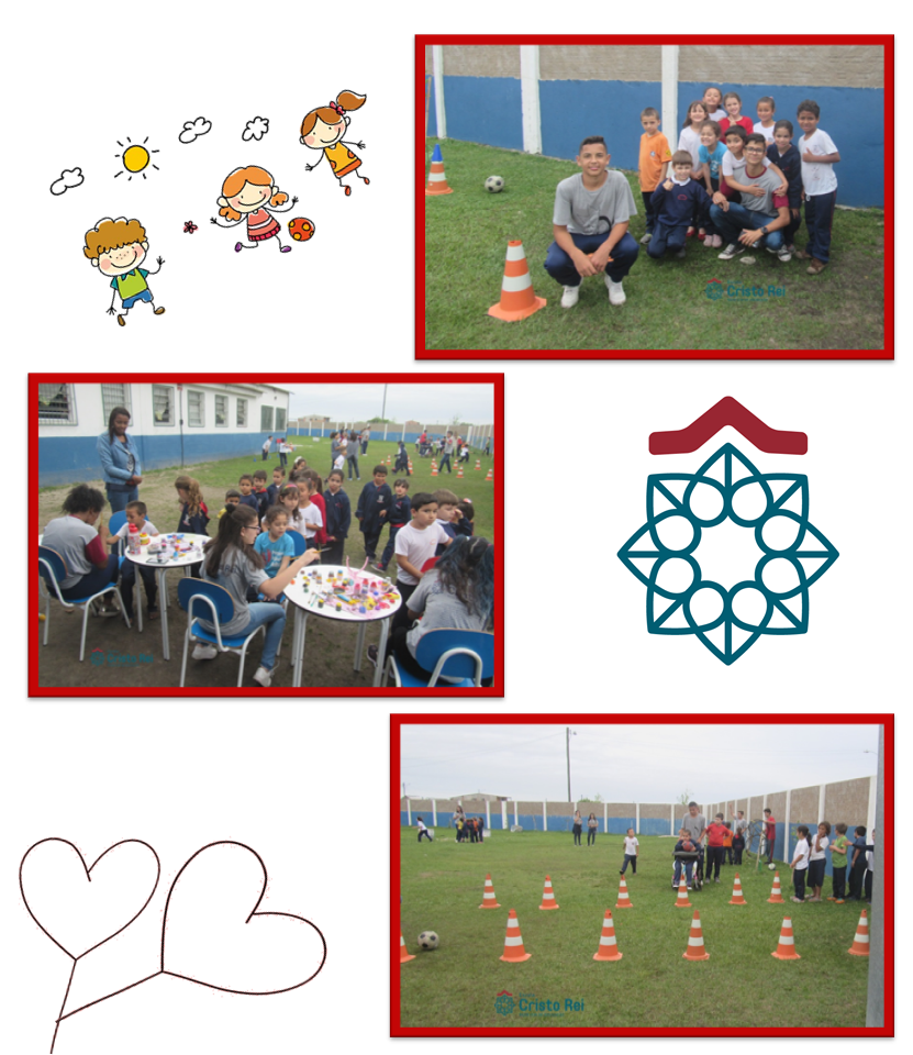 Ao longo dos meses de outubro e novembro do corrente ano foi realizado com os alunos do 9º ano da Escola Cristo Rei Rede ICM de educação o projeto Aprendendo brincando que foi elaborado com o objetivo de socializar e trabalhar as diferenças. Este projeto contou com a participação dos alunos do 9º ano que acompanhados da coordenadora pedagógica Mônica Meireles Costa, da coordenadora da Pastoral Rosangela Carpes e da orientadora Pedagógica Renata Silveira foram até quatro escolas públicas da cidade de Rio Grande proporcionar uma tarde de muitas brincadeiras e diversão com oficinas de tatuagem e jogos interativos elaborados e pensados pelos alunos do 9º ano sob a orientação do Professor Lucas de Educação Física.