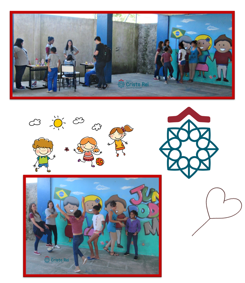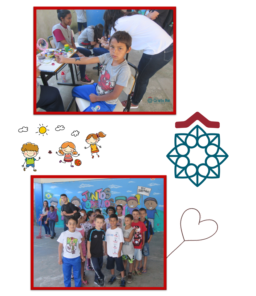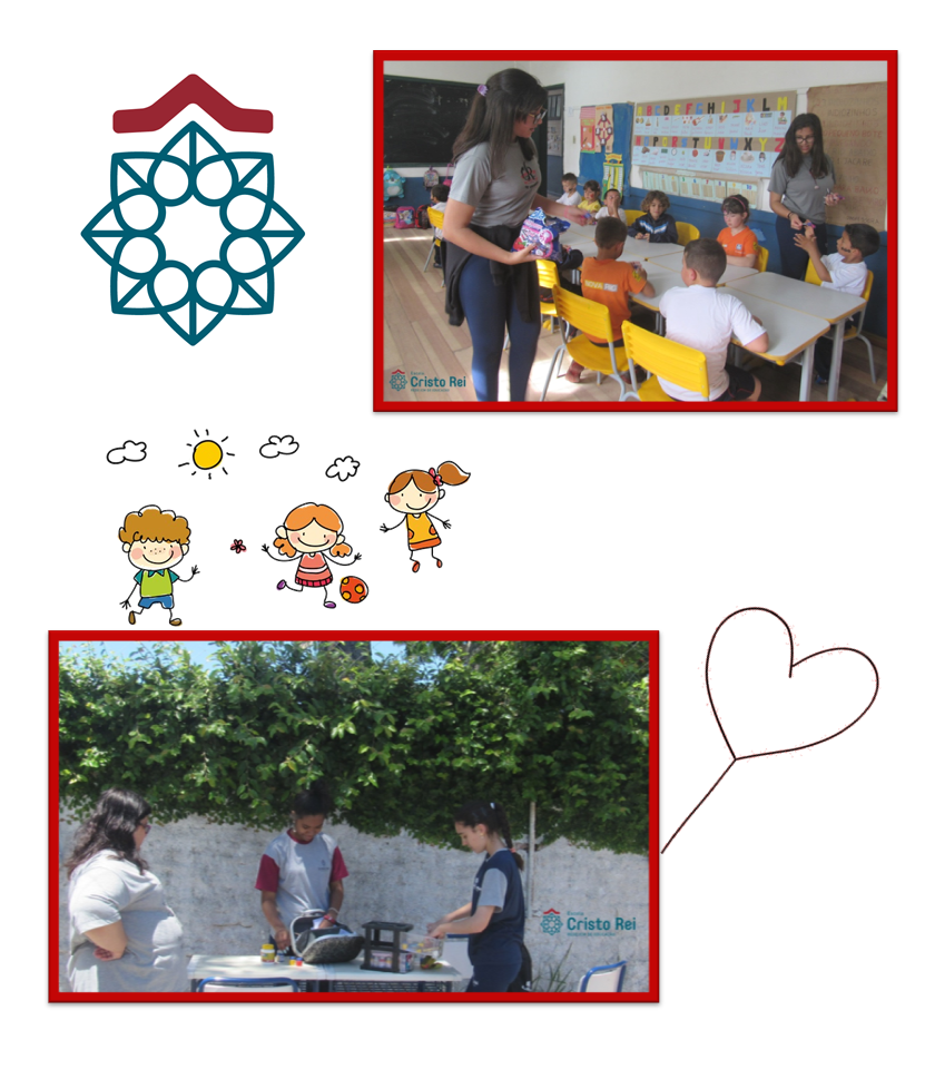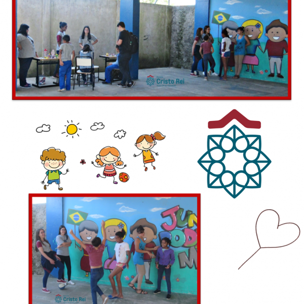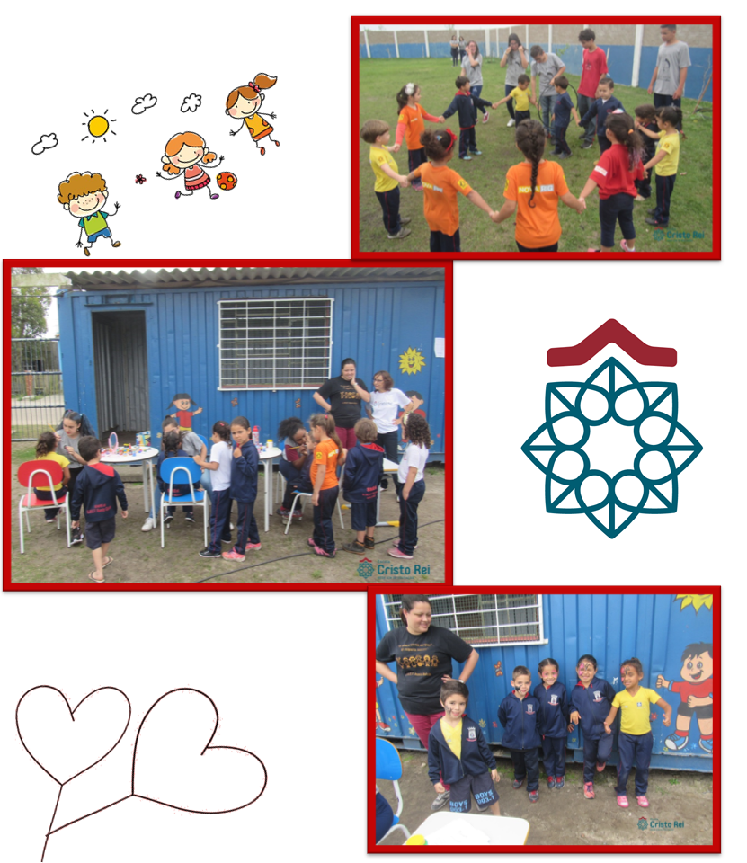 Ao longo dos meses de outubro e novembro do corrente ano foi realizado com os alunos do 9º ano da Escola Cristo Rei Rede ICM de educação o projeto Aprendendo brincando que foi elaborado com o objetivo de socializar e trabalhar as diferenças. Este projeto contou com a participação dos alunos do 9º ano que acompanhados da coordenadora pedagógica Mônica Meireles Costa, da coordenadora da Pastoral Rosangela Carpes e da orientadora Pedagógica Renata Silveira foram até quatro escolas públicas da cidade de Rio Grande proporcionar uma tarde de muitas brincadeiras e diversão com oficinas de tatuagem e jogos interativos elaborados e pensados pelos alunos do 9º ano sob a orientação do Professor Lucas de Educação Física.