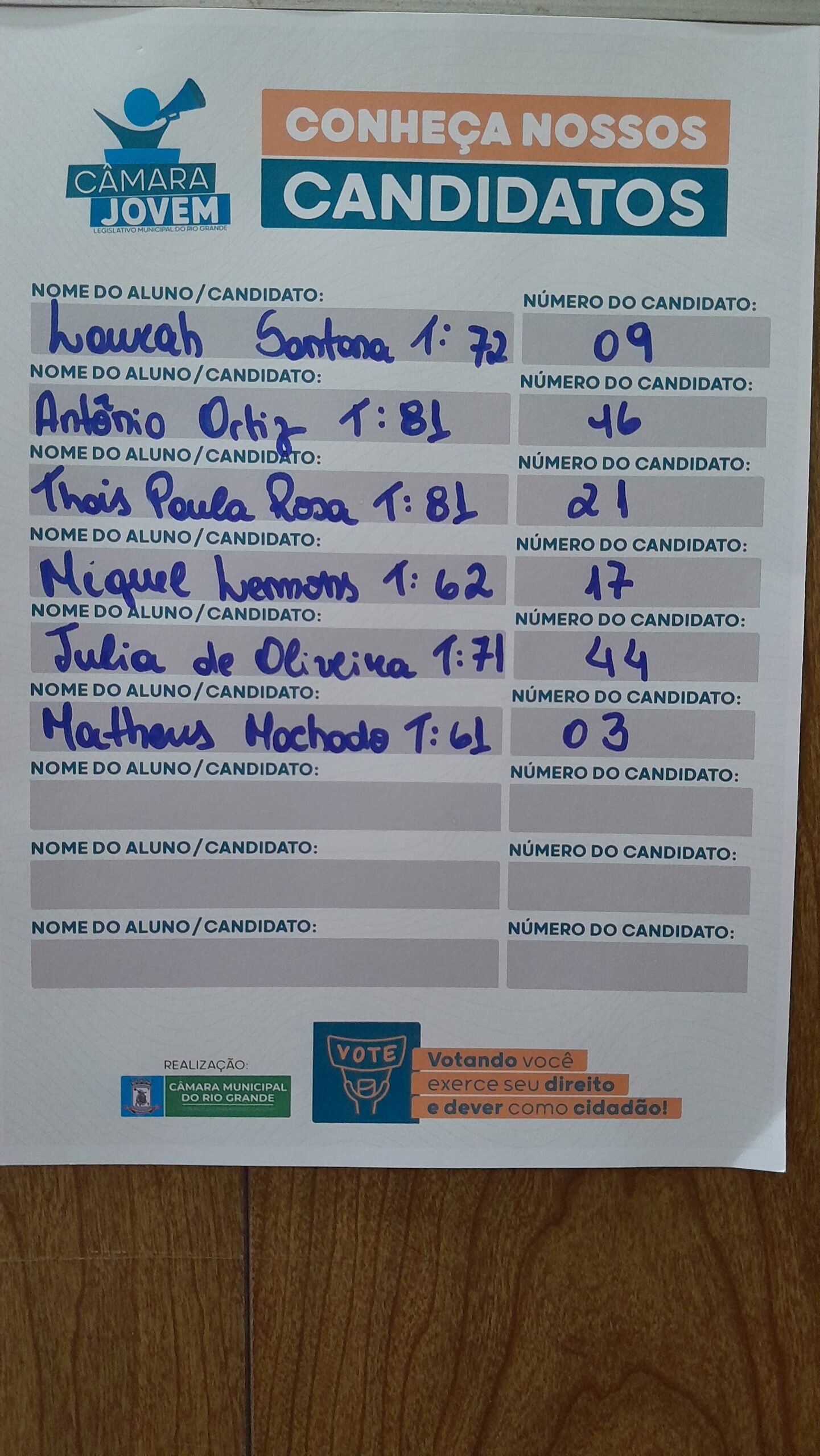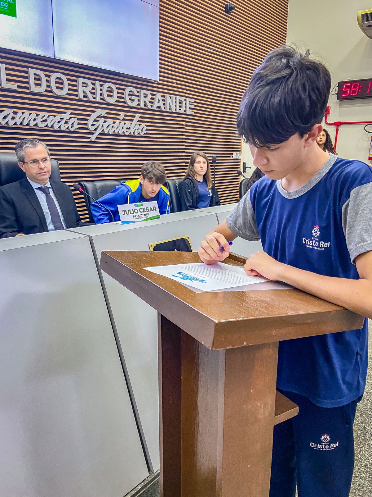 Os estudantes da Escola Cristo Rei participaram do projeto. Realizou-se  uma votação e o escolhido pelos estudantes da nossa Escola foi o aluno Antônio Ortiz que representou a Escola Cristo Rei na Câmara de Vereadores da cidade do Rio Grande.