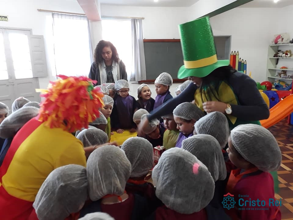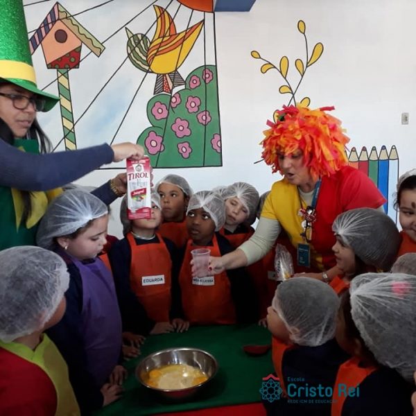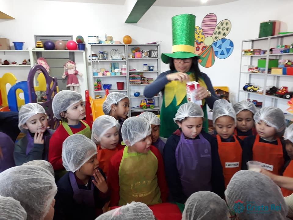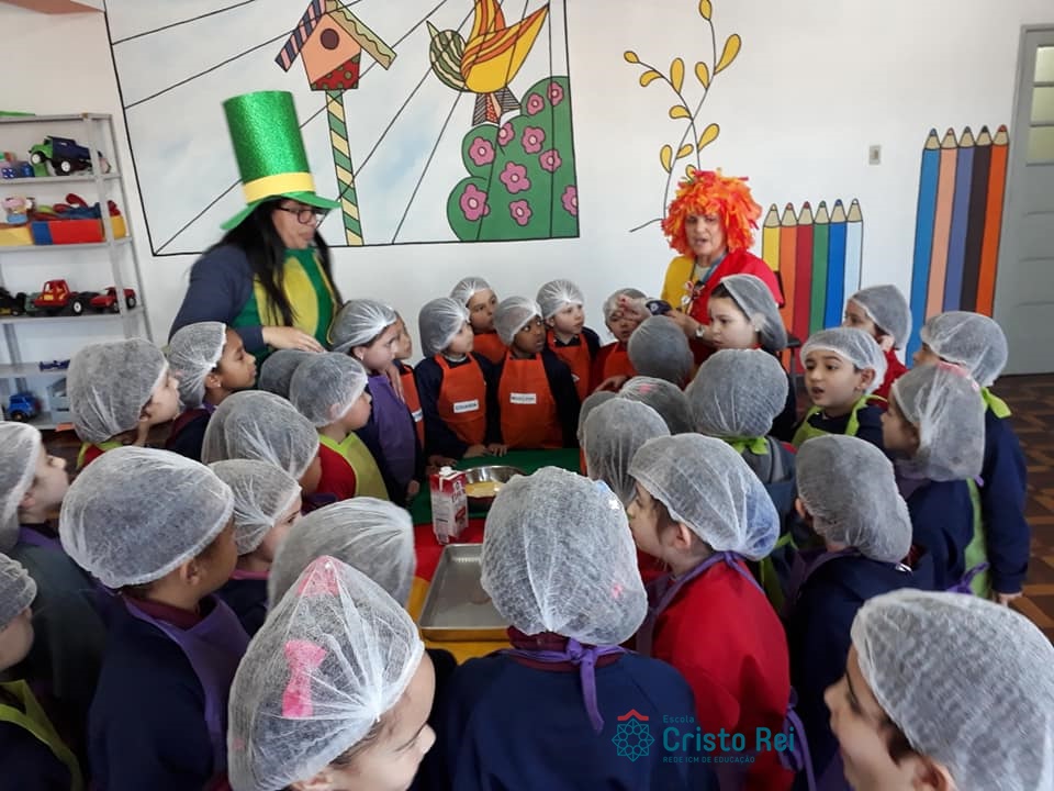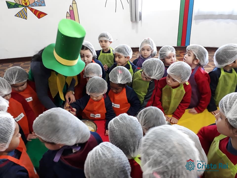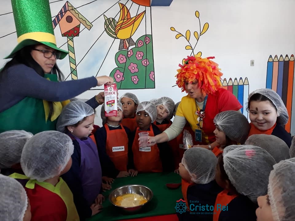 Na companhia das personagens do Sítio do Picapau Amarelo, Emília e Visconde, os alunos da Educação Infantil juntamente com as professoras Maria Lucia Gonzales e Michele Costa, encerraram o “Projeto Folclore” de forma lúdica e saborosa: fizeram um delicioso bolo de milho. Tarde mais que especial!