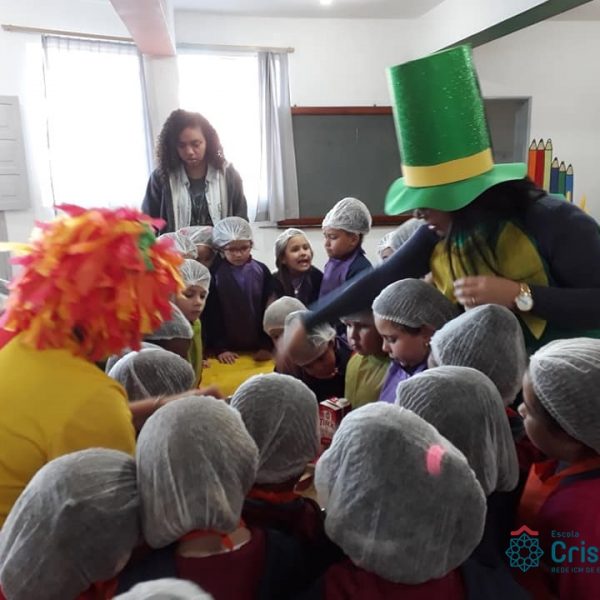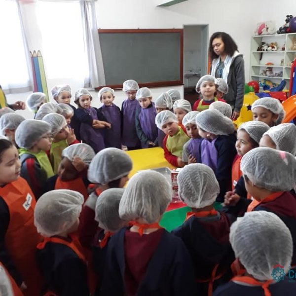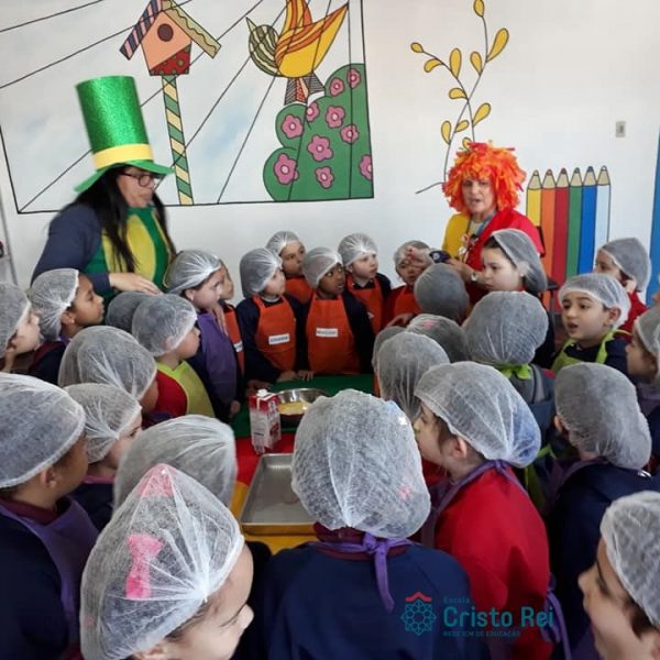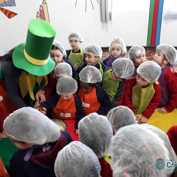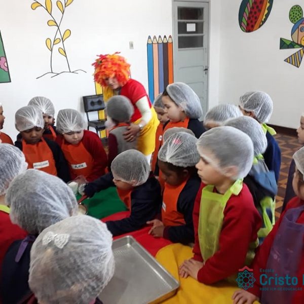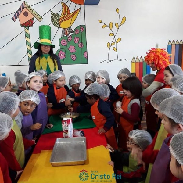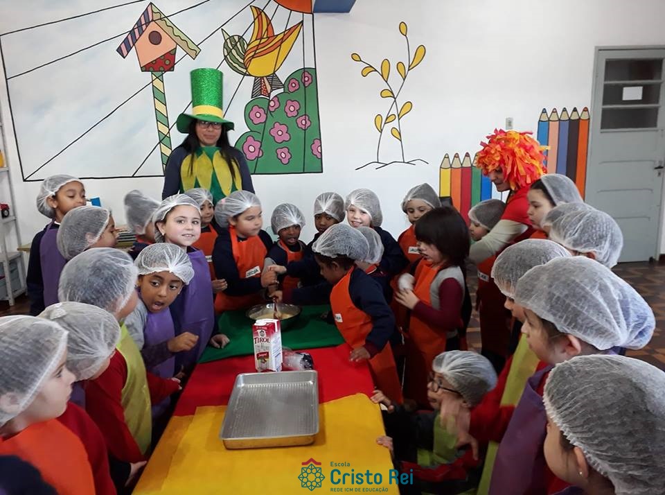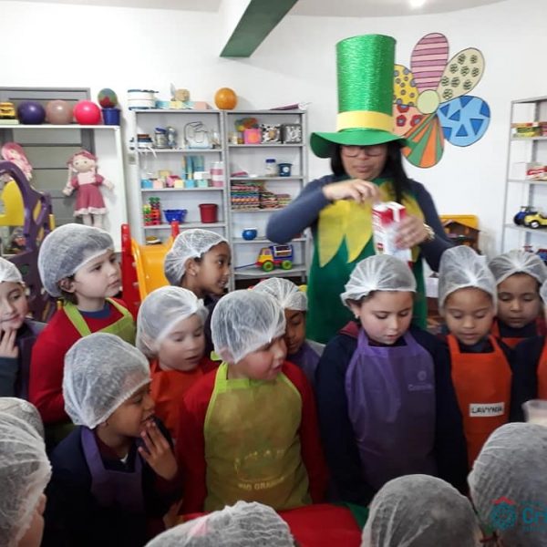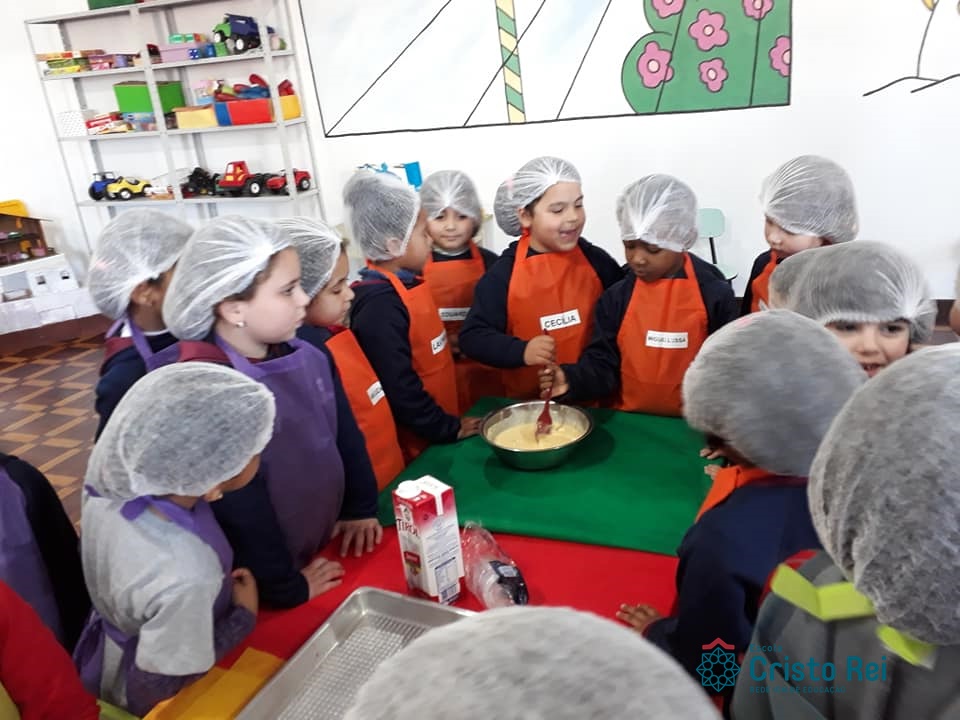 Na companhia das personagens do Sítio do Picapau Amarelo, Emília e Visconde, os alunos da Educação Infantil juntamente com as professoras Maria Lucia Gonzales e Michele Costa, encerraram o “Projeto Folclore” de forma lúdica e saborosa: fizeram um delicioso bolo de milho. Tarde mais que especial!