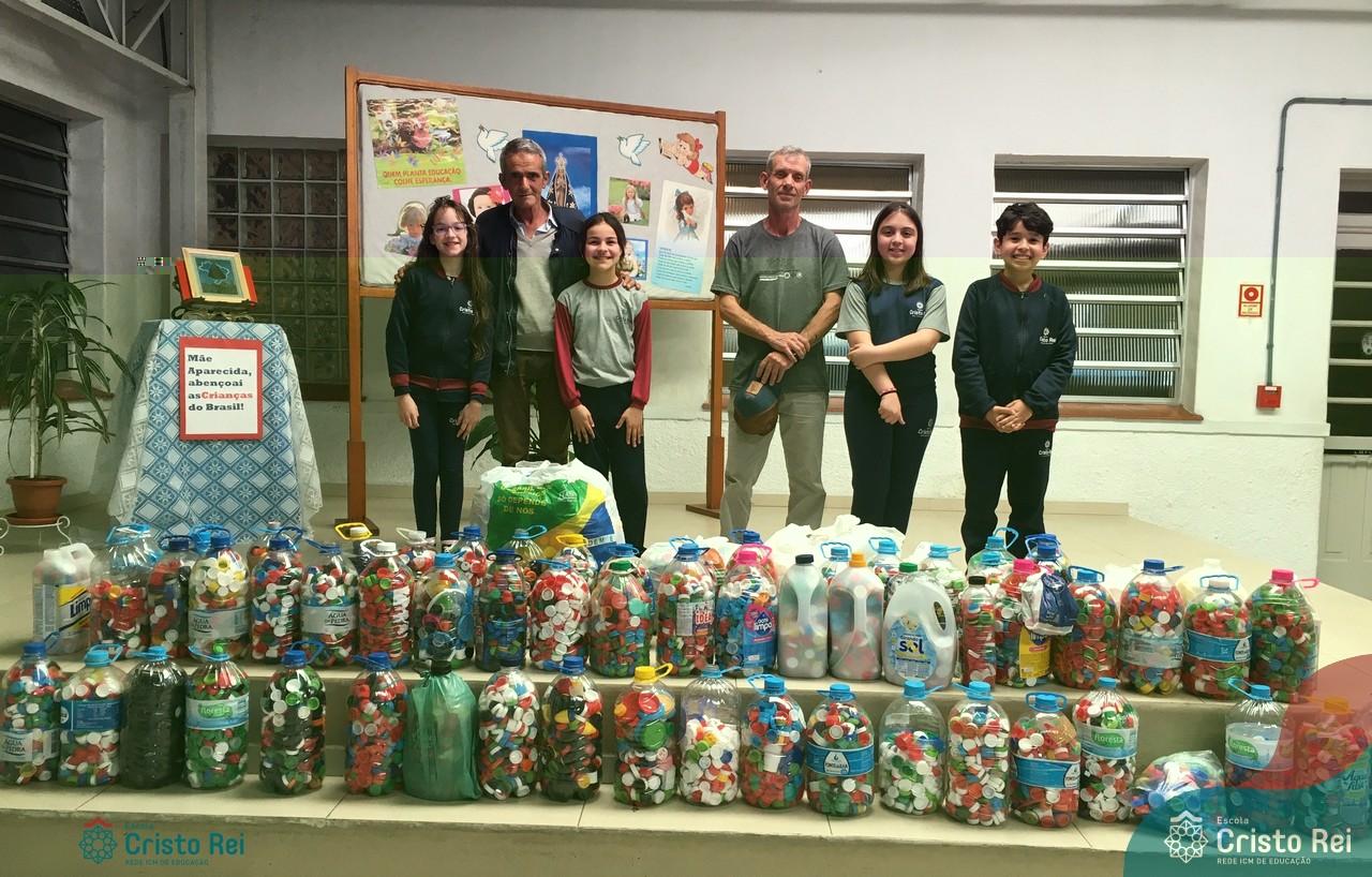 Dando continuidade ao projeto “Reciclando e Construindo o bem”, os alunos do 4° ano repassaram à Comunidade Terapêutica Vida Nova às tampinhas arrecadadas ao longo dos meses junho à setembro. Foram arrecadados 109 Kg de tampinhas.