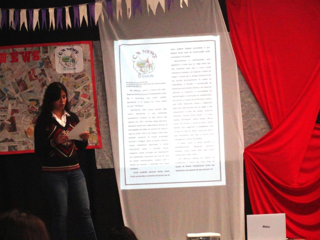 Foi com muita alegria e satisfação de dever cumprido que nesta última quarta (14 de junho) inauguramos a primeira edição do jornal online “CR News” através da temática Café com Jornal momento em que alunos, professores e funcionários da escola celebraram com café e salgadinhos a leitura da 1ª edição do jornal. O jornal é um espaço dedicado aos professores e alunos exporem através de textos e imagens o que vêm produzindo ao longo do ano letivo baseados em temas do cotidiano, culturais, sociais e ambientais associados a Inclusão social, cidadania, saúde ecologia e ética temas que são diariamente abordados em nosso ambiente escolar. Por isso, convidamos todos a lerem nossas produções esperamos que sintam na leitura o prazer que sentimos ao realizar e idealizar os textos escritos com carinho e dedicação. Essa produção é de todos nós alunos dos anos finais da Rede ICM de Educação Cristo Rei. Desde já desejamos uma ótima leitura!