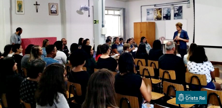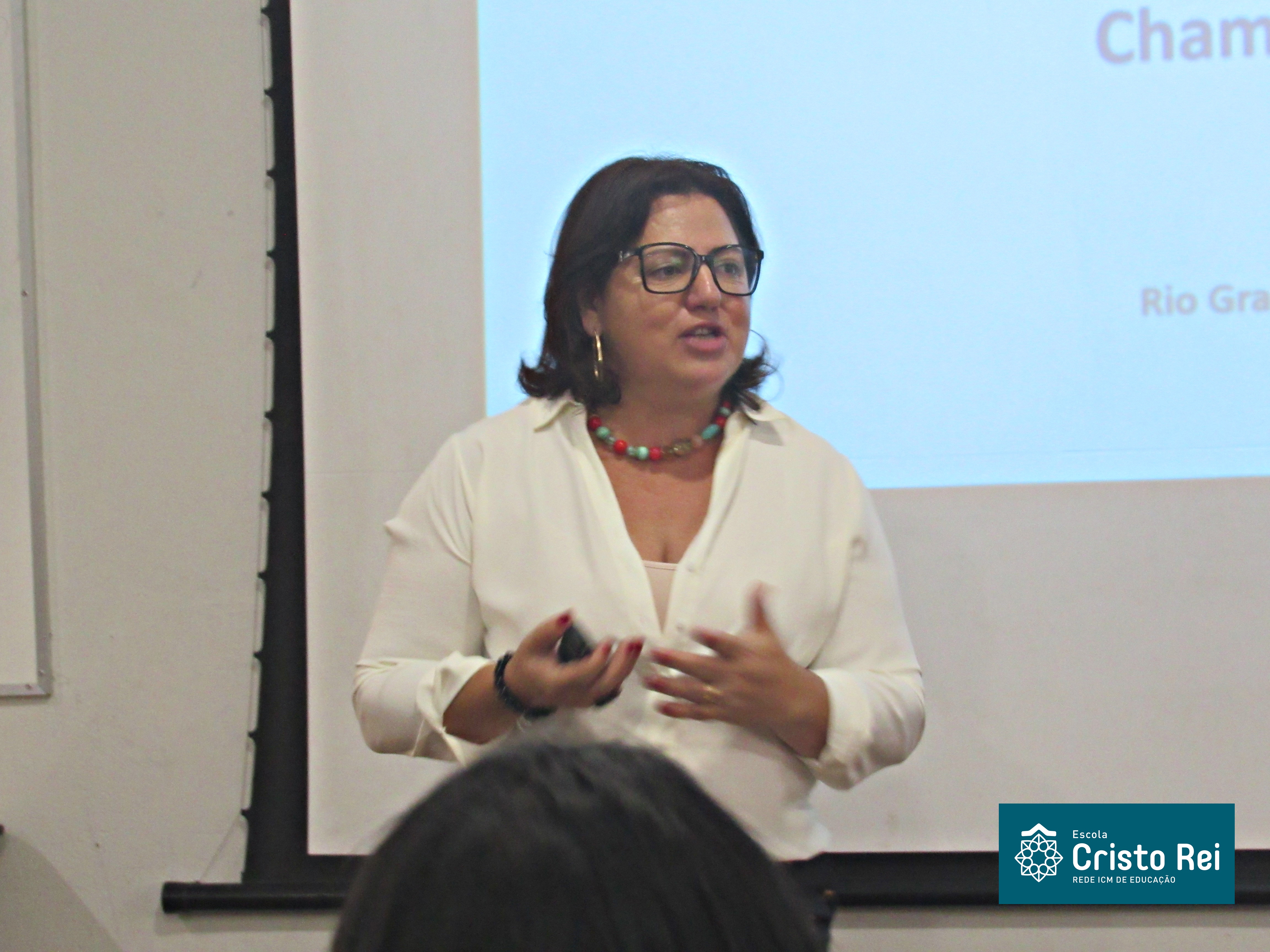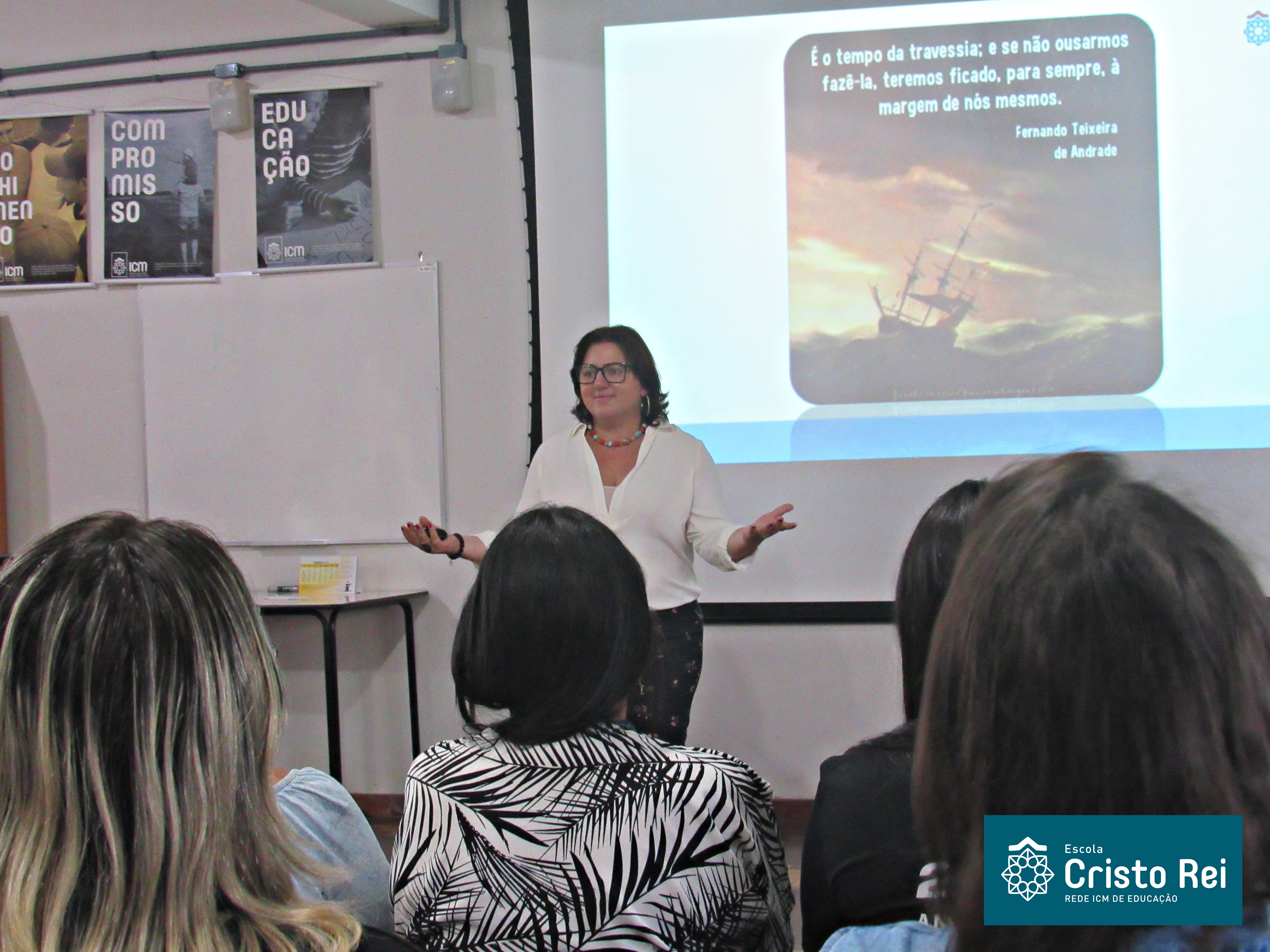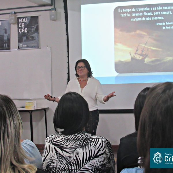 Recebemos a representante da Editora SM Mestra em Educação Daniela Pedra Mattos, a qual abordou com os professores da área o tema “ O Protagonismo do Professor no grande palco chamado sala de aula.” O aprendizado gerou a elaboração do Projeto “Pilares na Criação.”