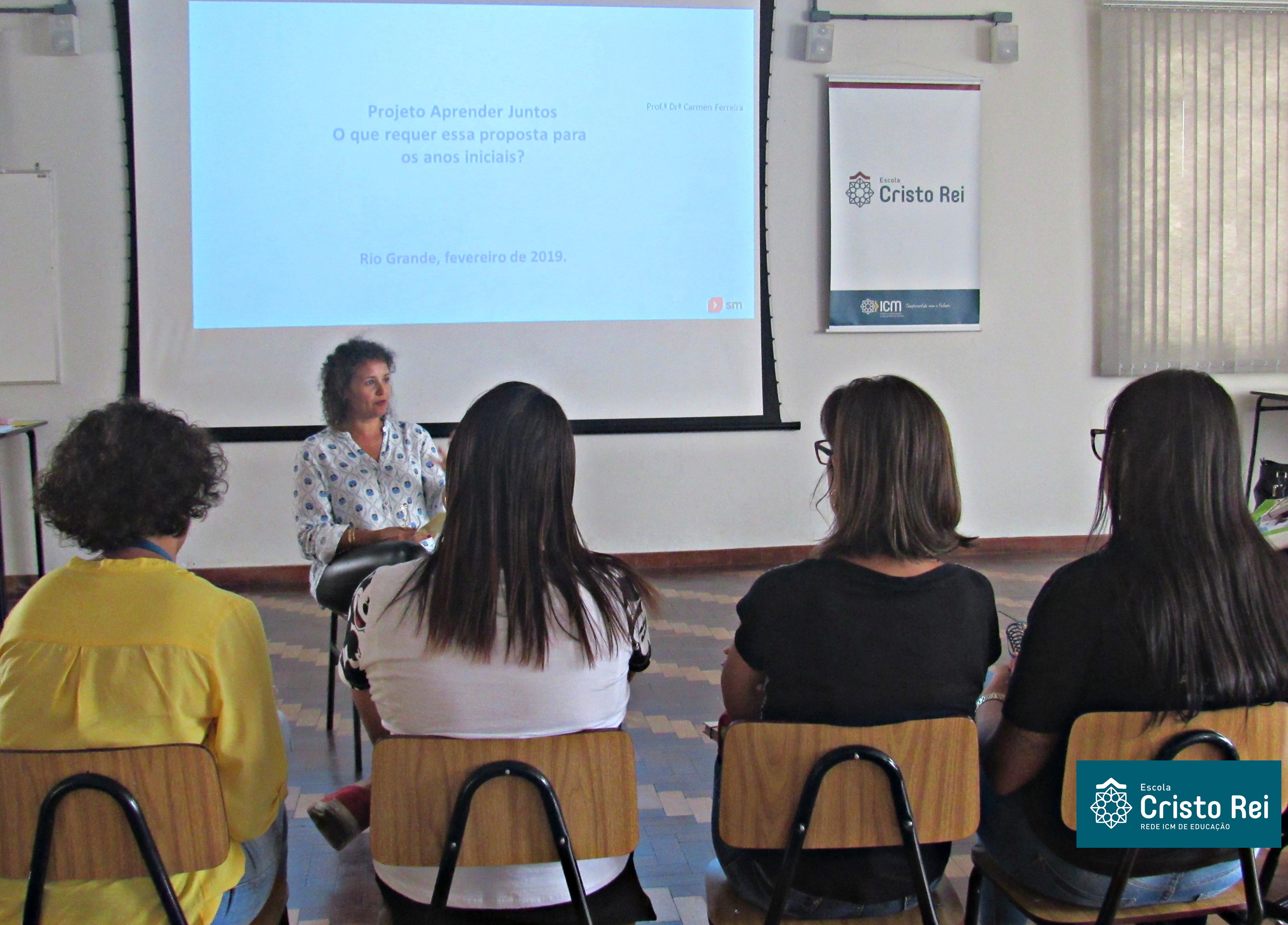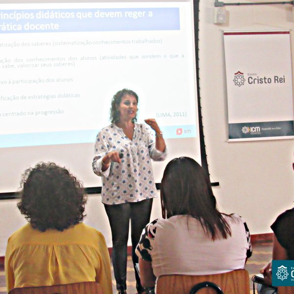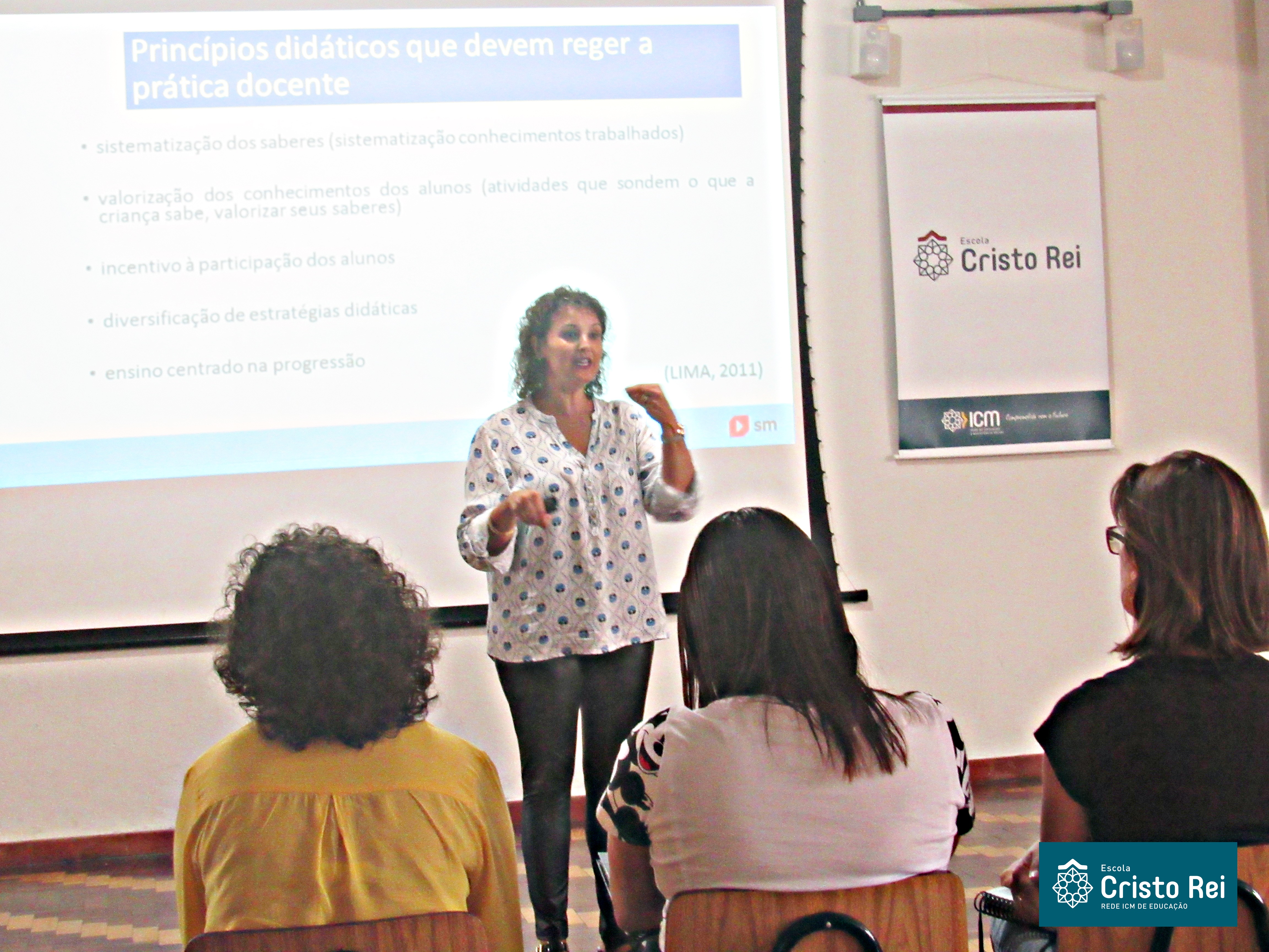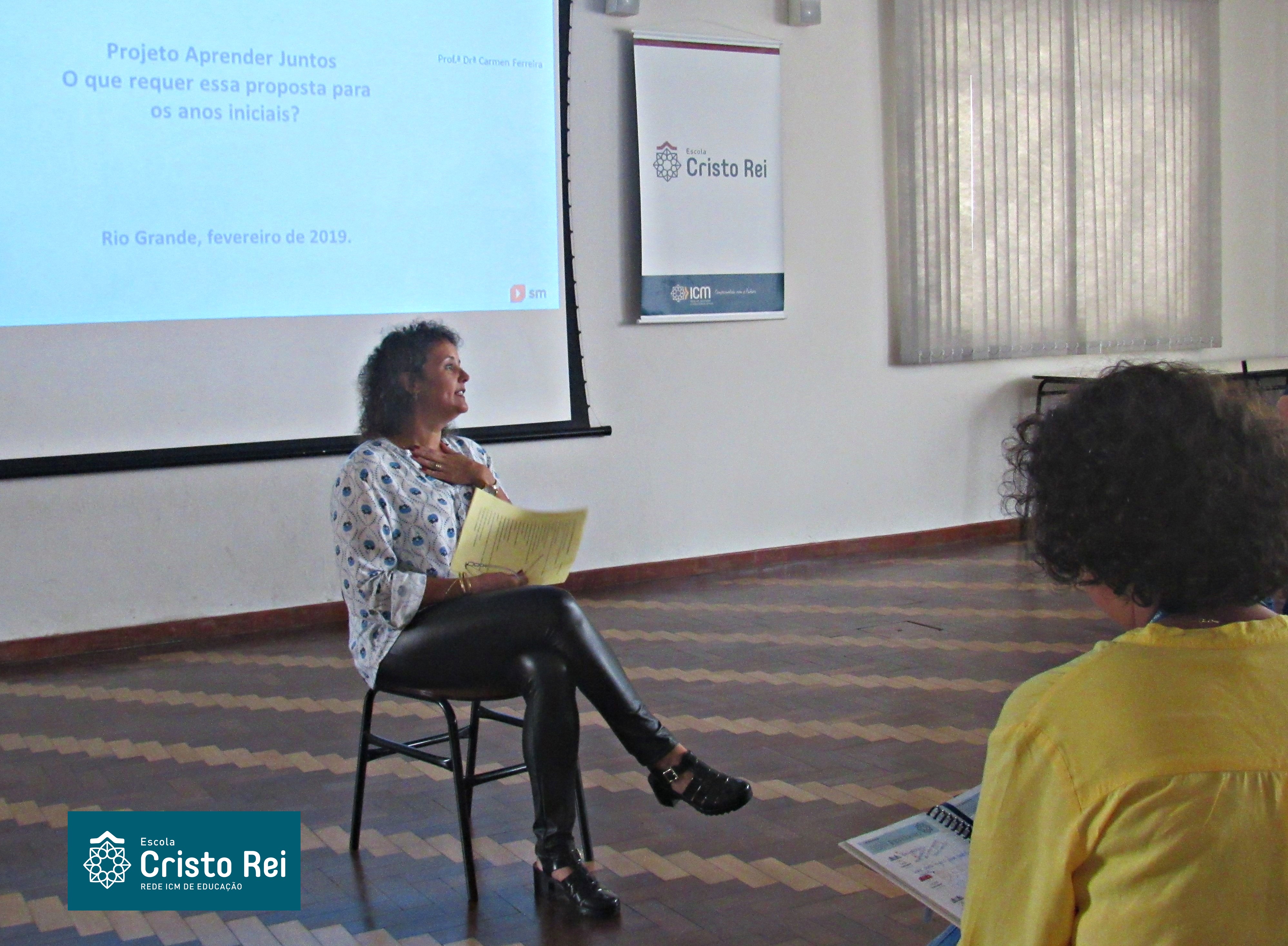 Recebemos a representante da Editora SM Mestra em Educação Daniela Pedra Mattos, a qual abordou com os professores da área o tema “ O Protagonismo do Professor no grande palco chamado sala de aula.” O aprendizado gerou a elaboração do Projeto “Pilares na Criação.”