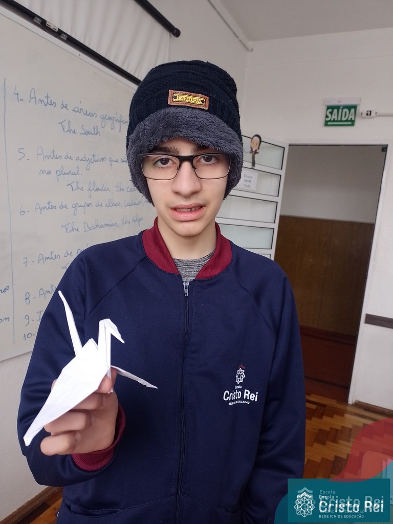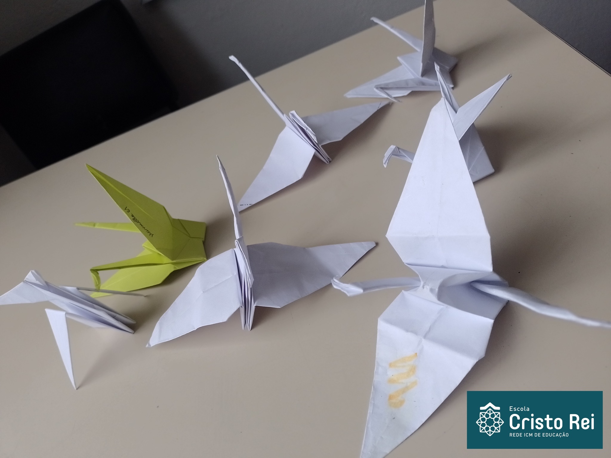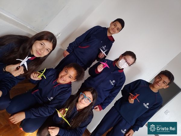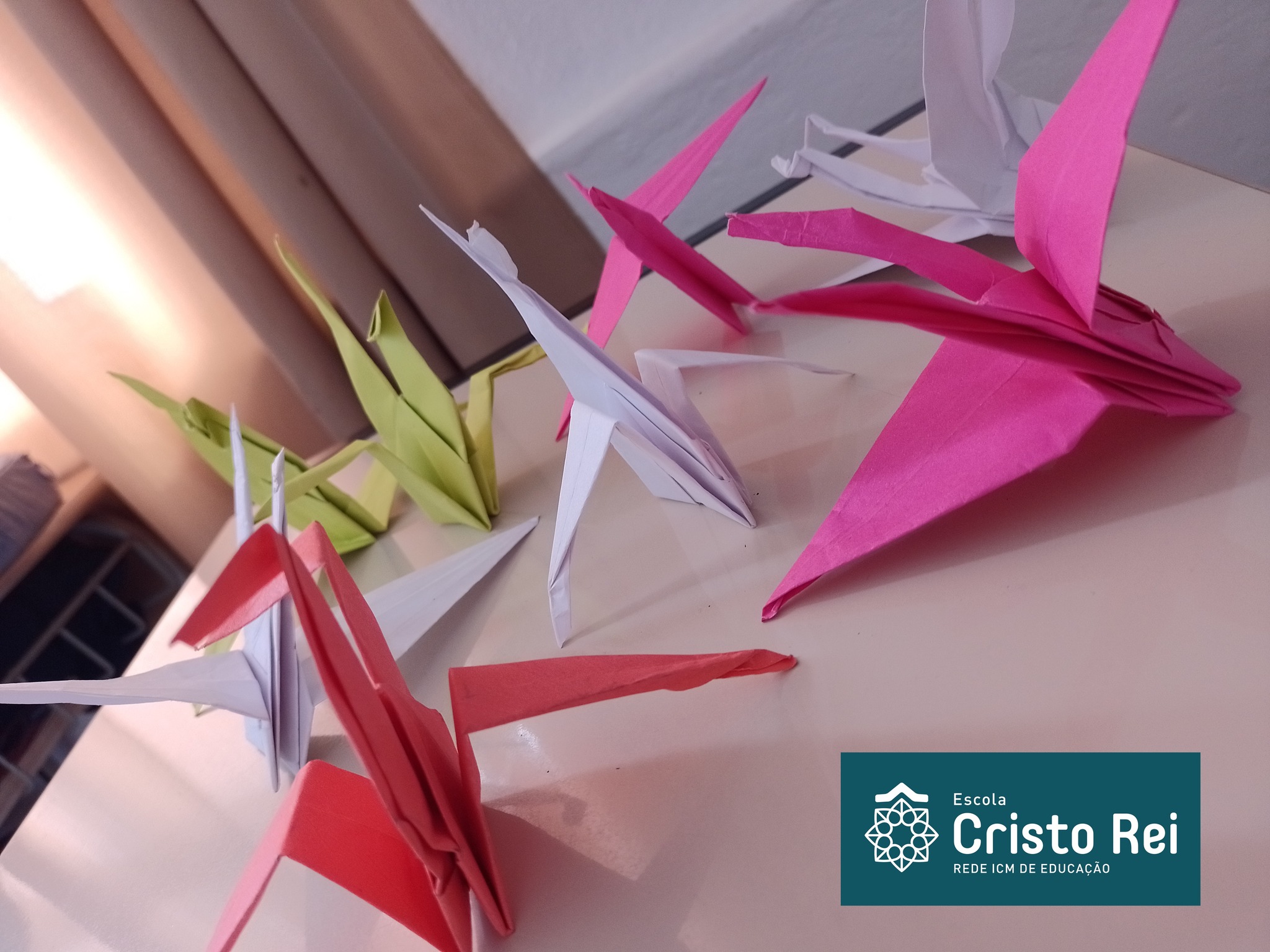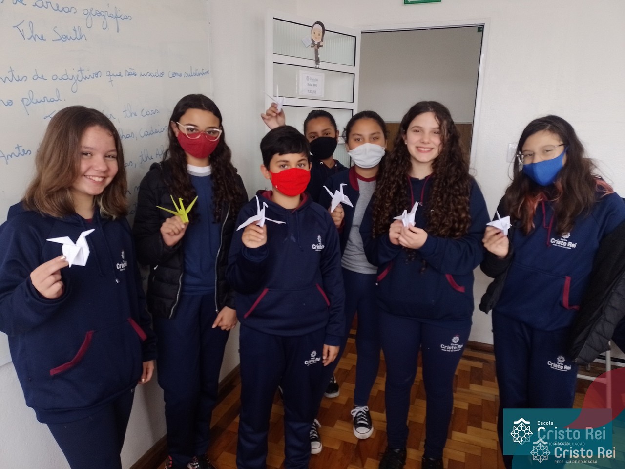 Sendo um dos mais conhecidos símbolos da paz, a confecção do Tsuru (origami) representa um ato de esperança. Desta forma, as turmas do 6º ano, construíram, através da disciplina de Ensino Religioso, seus respectivos Tsurus contemplando as mais diversas intenções (recuperação de um doente, felicidade, estudos, conquistas, etc).