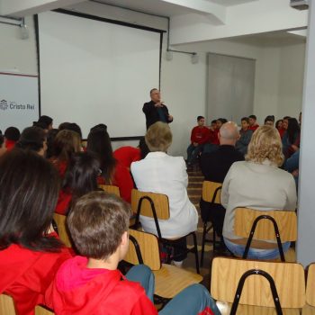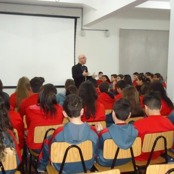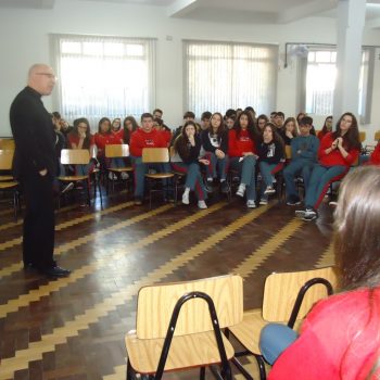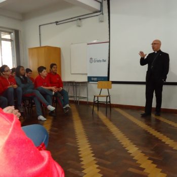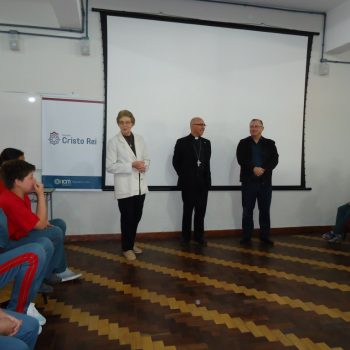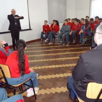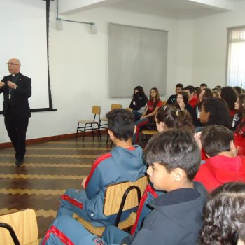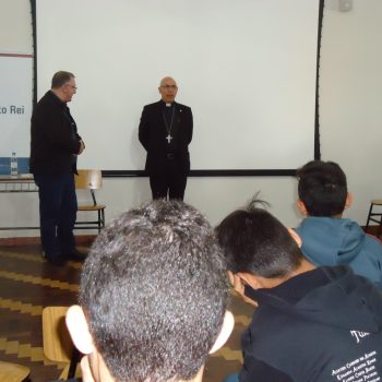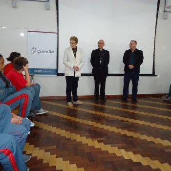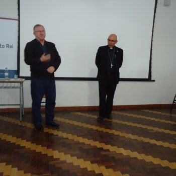 Visita Pastoral Missionária da Paróquia Nossa Senhora do Carmo, Bispo Dom Ricardo Hoepers e Frei Paulo Prigol visitaram a Comunidade Cristo Rei e conversaram com os estudantes na parte da manhã.