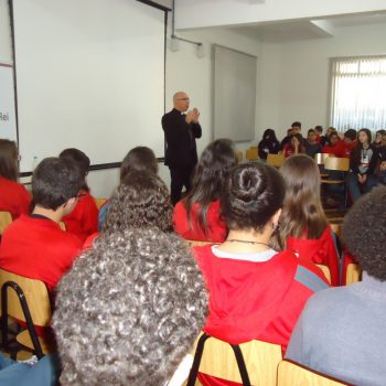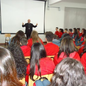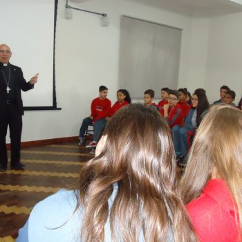 A vinda do Bispo à minha escola, foi uma experiência inédita, nunca pensei que pudesse me sentir tão bem ouvindo pequenas lições de vida de alguém que mal conhecia e pensei que fosse bem diferente. Adorei conhecê-lo e ter trocado 5 palavrinhas com ele. Emilly Reichow Turma 92