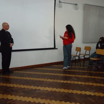Foi uma experiência muito boa, poder conversar, ouvir o que ele nos falou. Realmente foi incrível esse momento, recebe-lo na nossa escola foi um privilégio, uma honra. E se ele vier novamente, vamos acolher ele da melhor forma possível. Gabrielly Hernandorena Turma 72