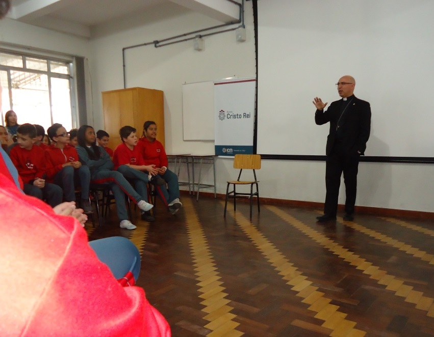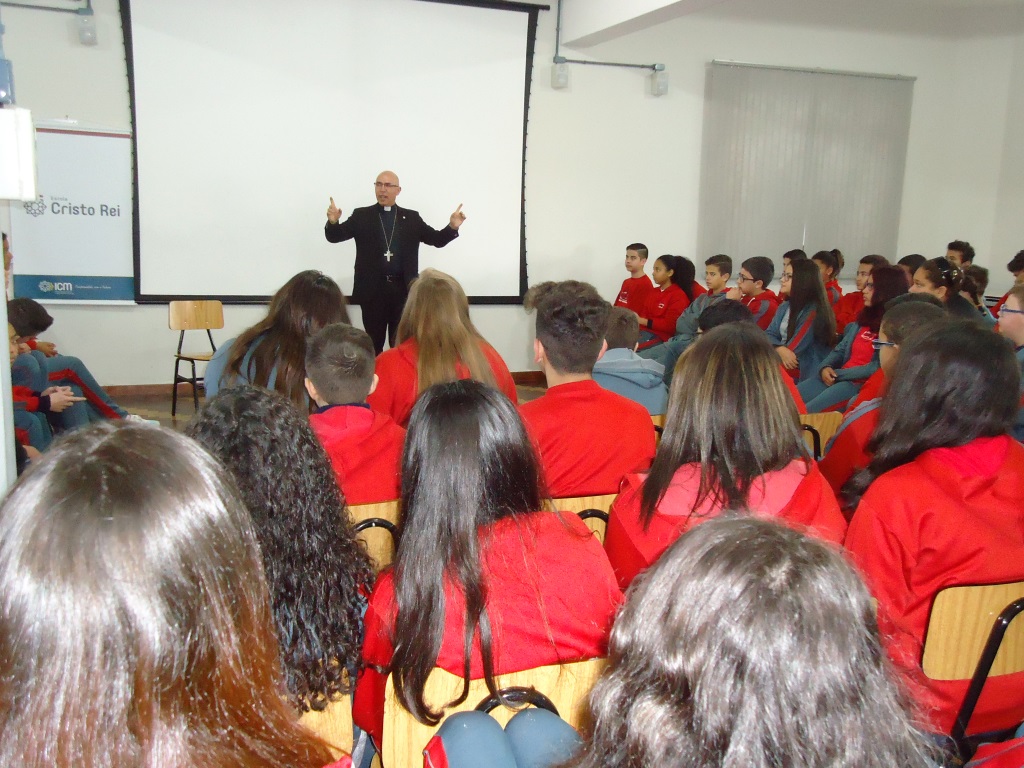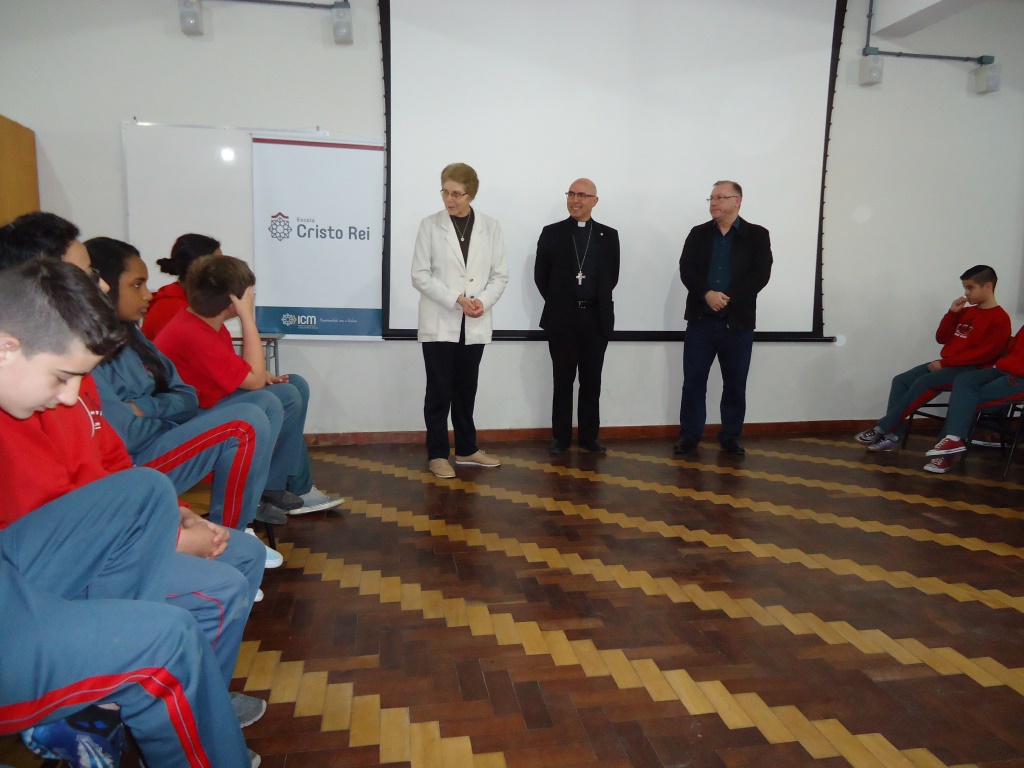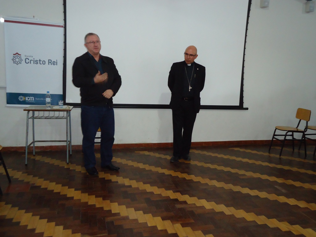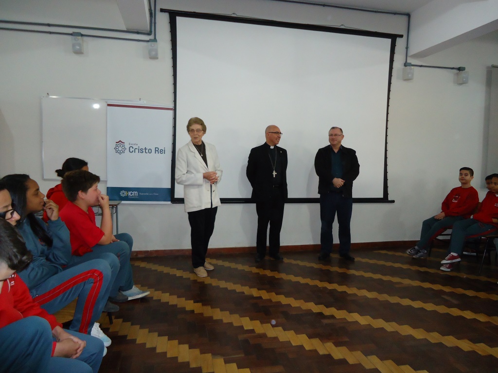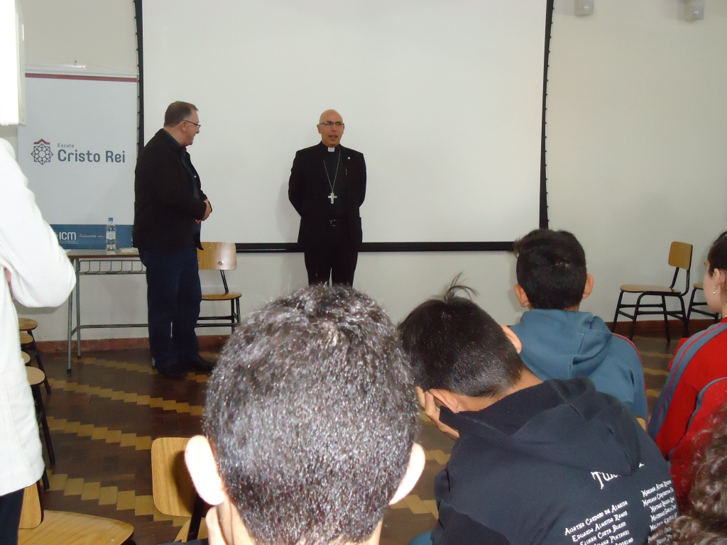 Visita Pastoral Missionária da Paróquia Nossa Senhora do Carmo, Bispo Dom Ricardo Hoepers e Frei Paulo Prigol visitaram a Comunidade Cristo Rei e conversaram com os estudantes na parte da manhã.