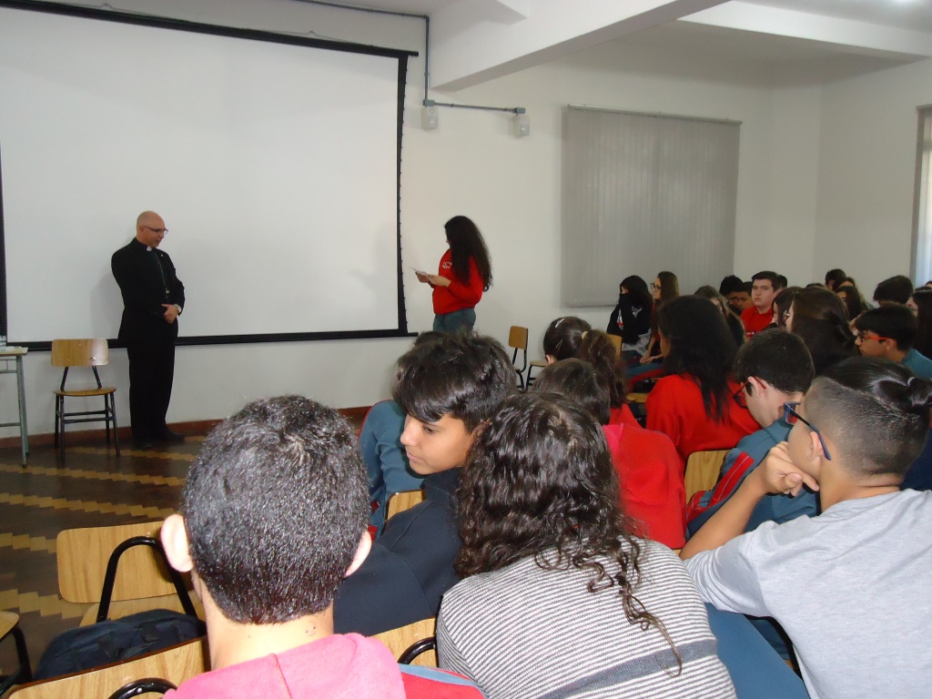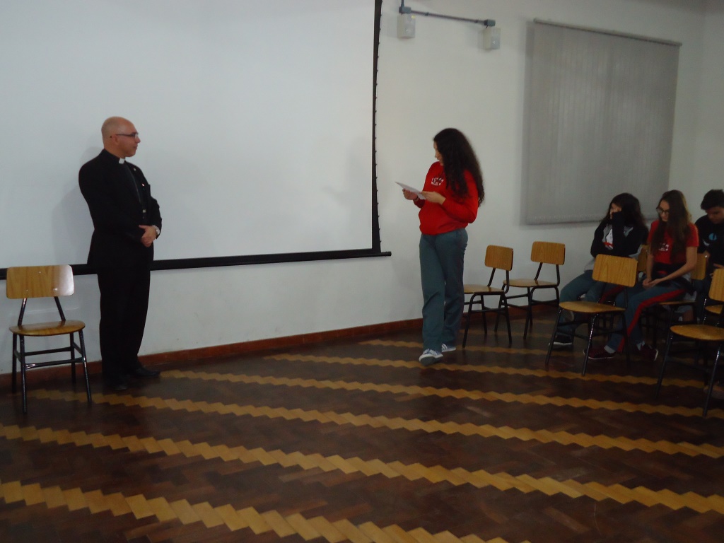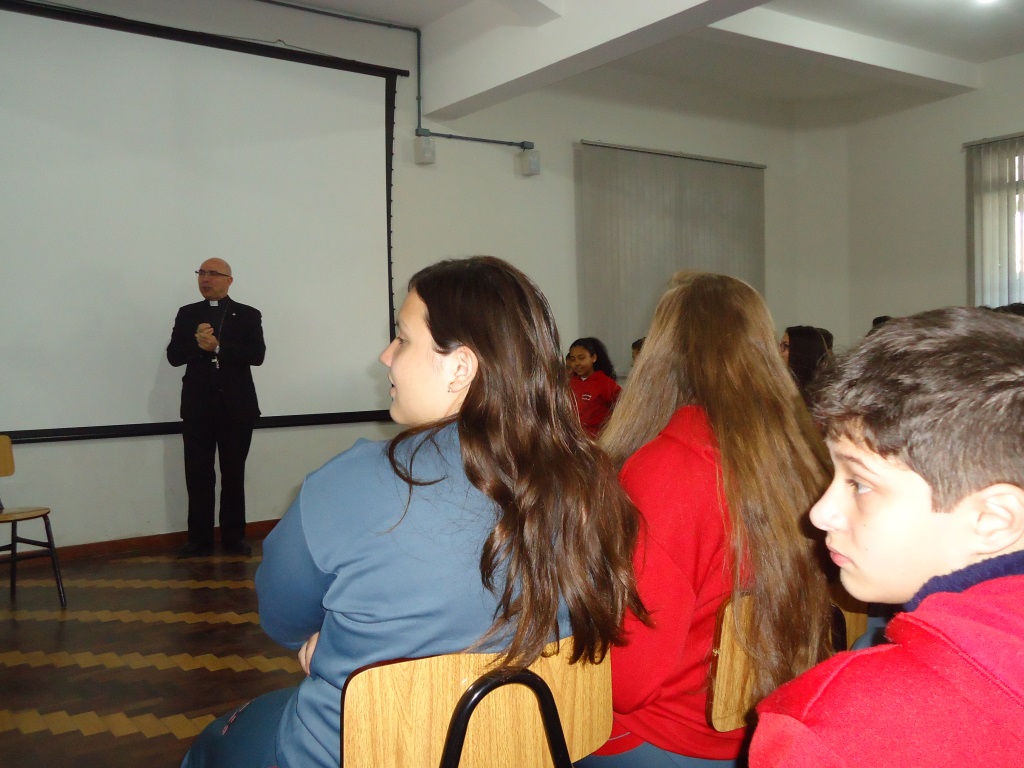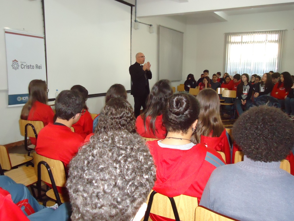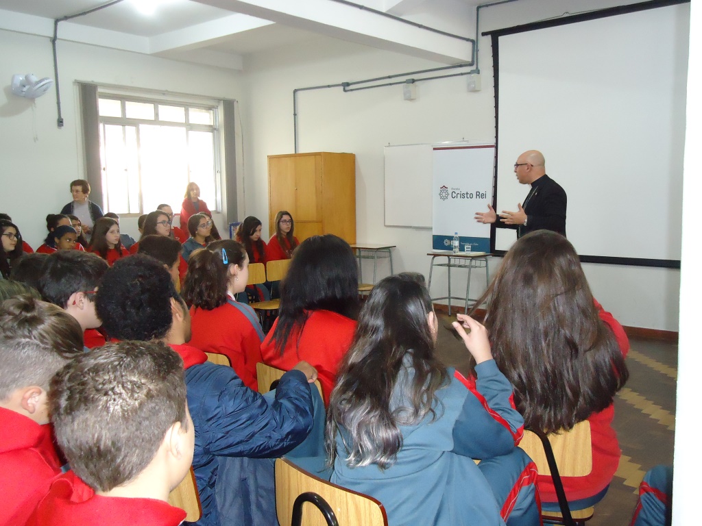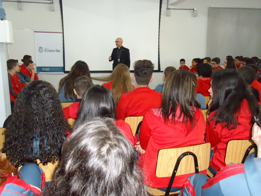Visita Pastoral Missionária da Paróquia Nossa Senhora do Carmo, Bispo Dom Ricardo Hoepers e Frei Paulo Prigol visitaram a Comunidade Cristo Rei e conversaram com os estudantes na parte da manhã.