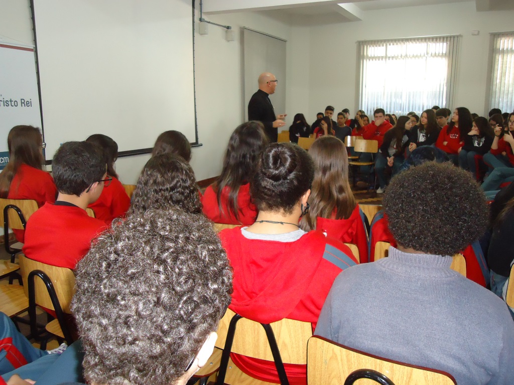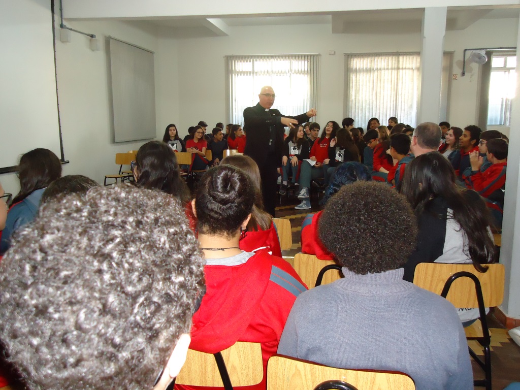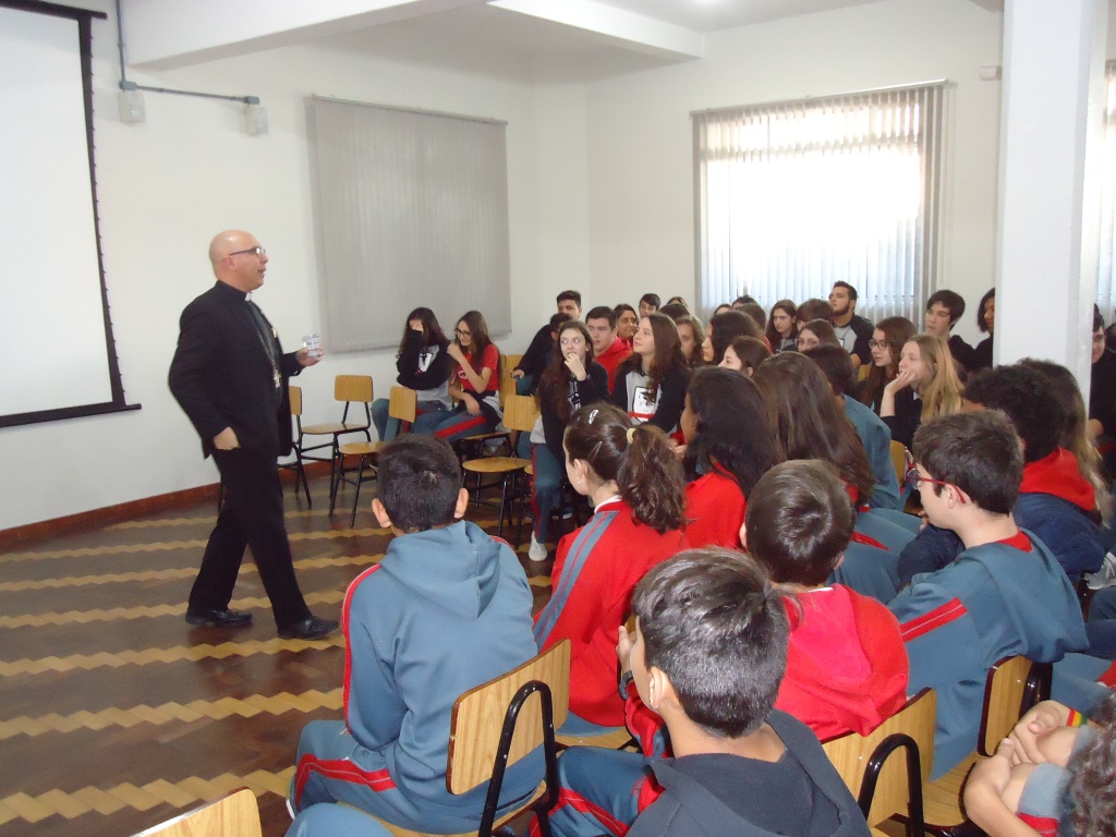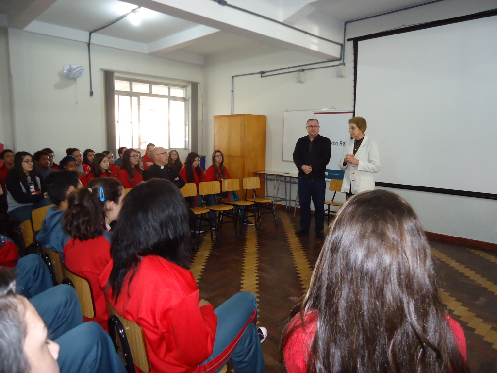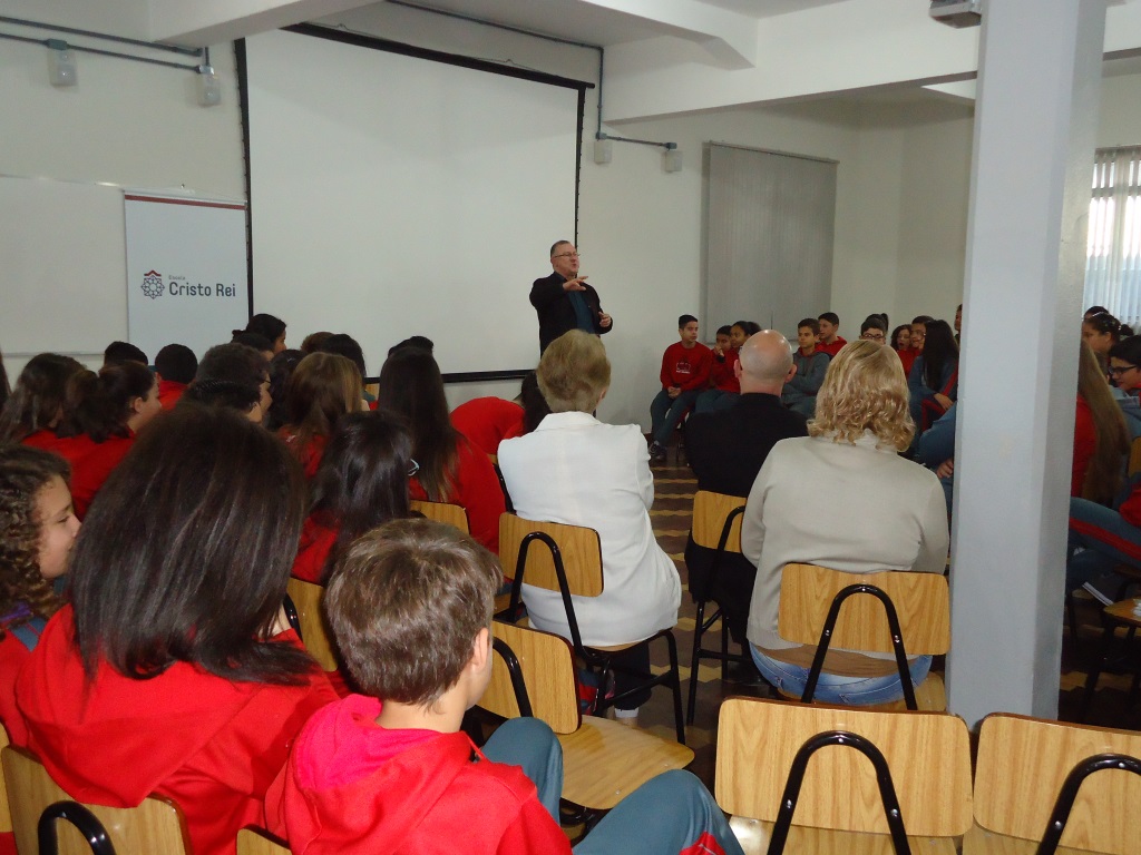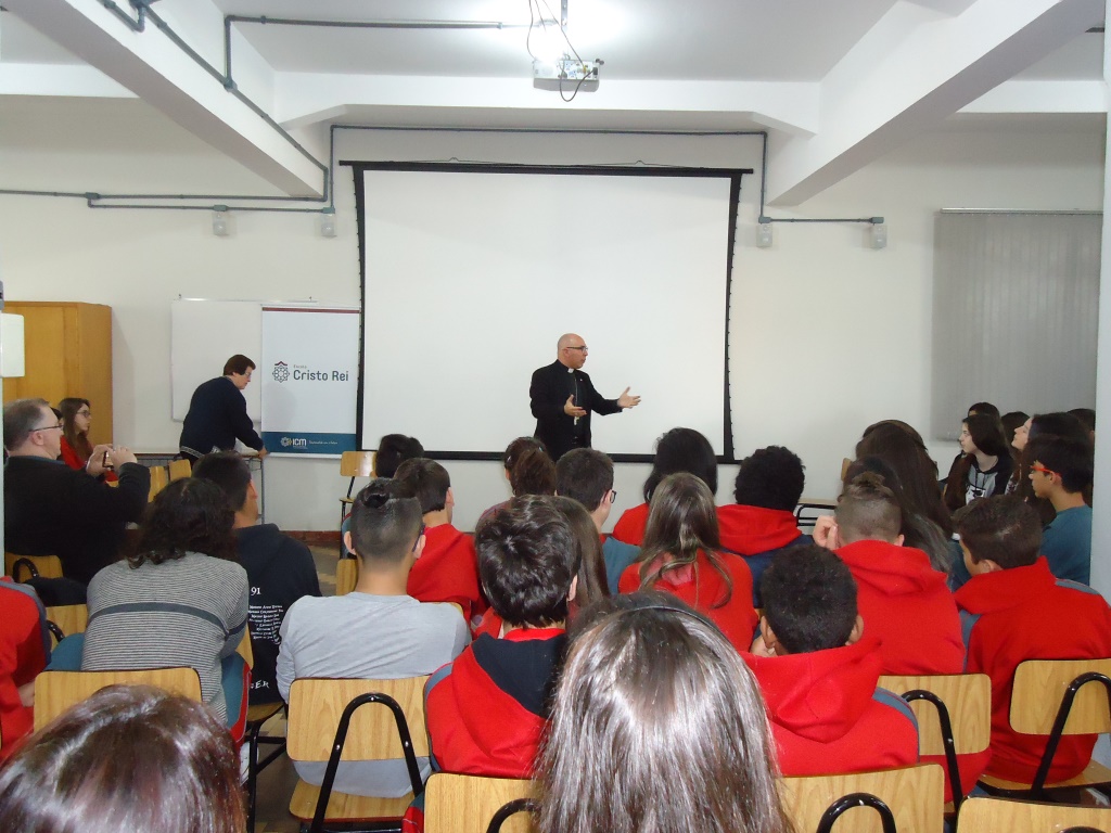 Visita Pastoral Missionária da Paróquia Nossa Senhora do Carmo, Bispo Dom Ricardo Hoepers e Frei Paulo Prigol visitaram a Comunidade Cristo Rei e conversaram com os estudantes na parte da manhã.