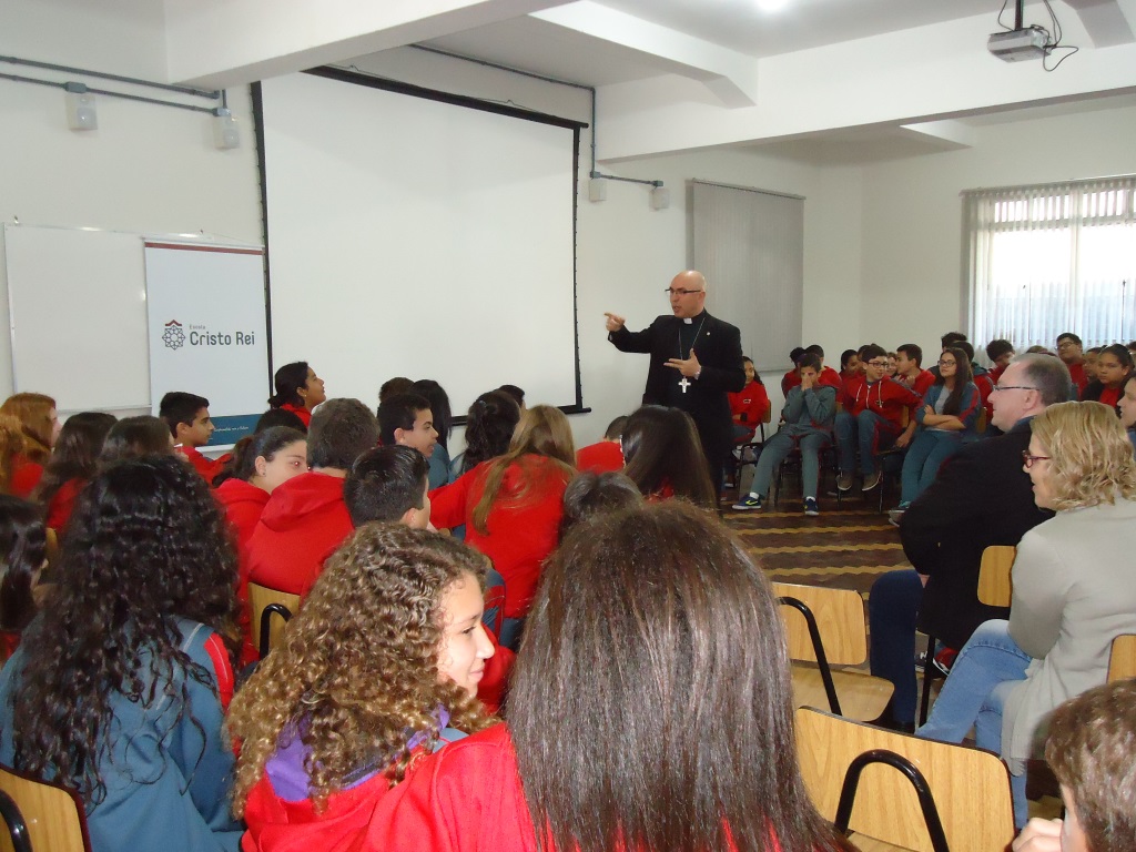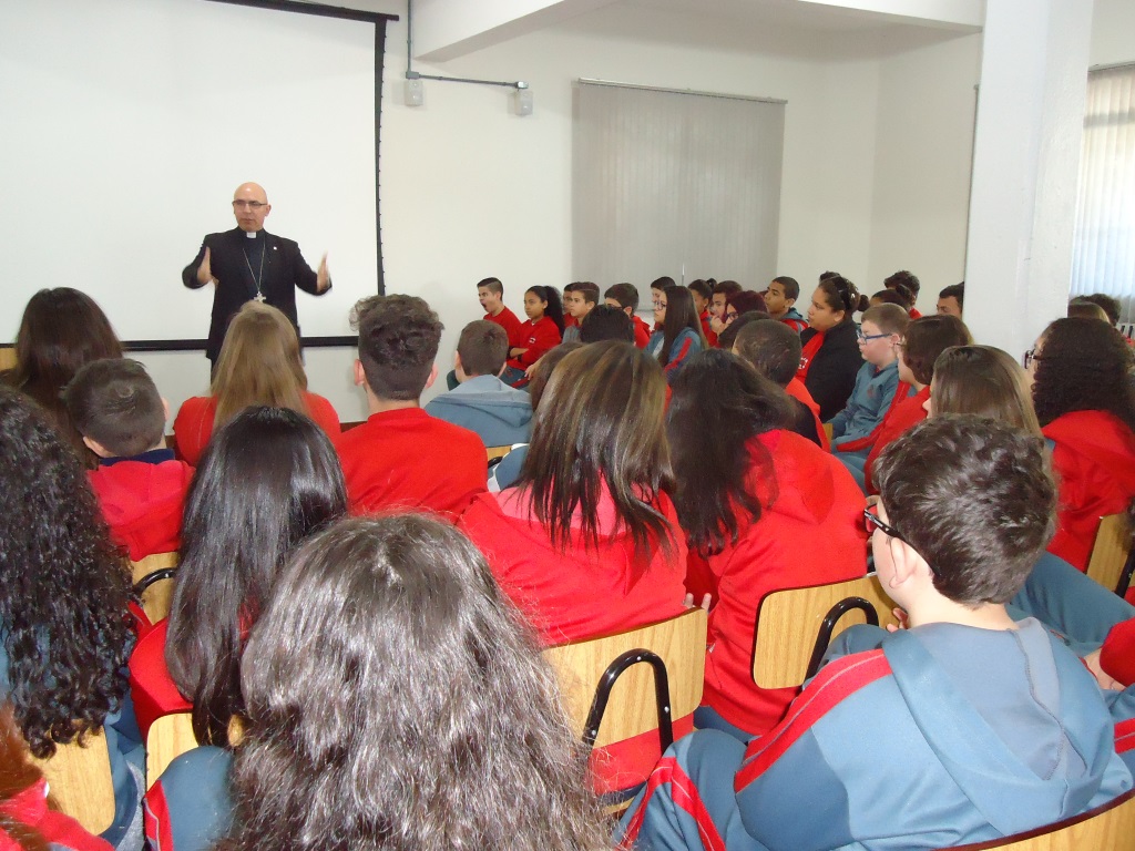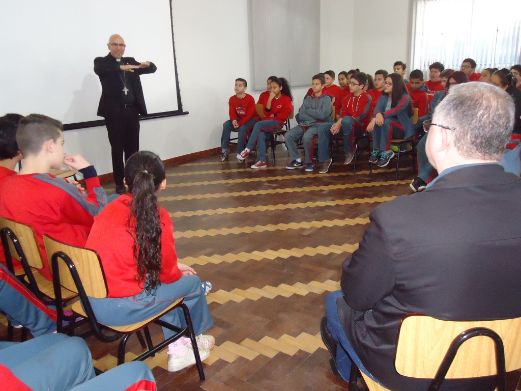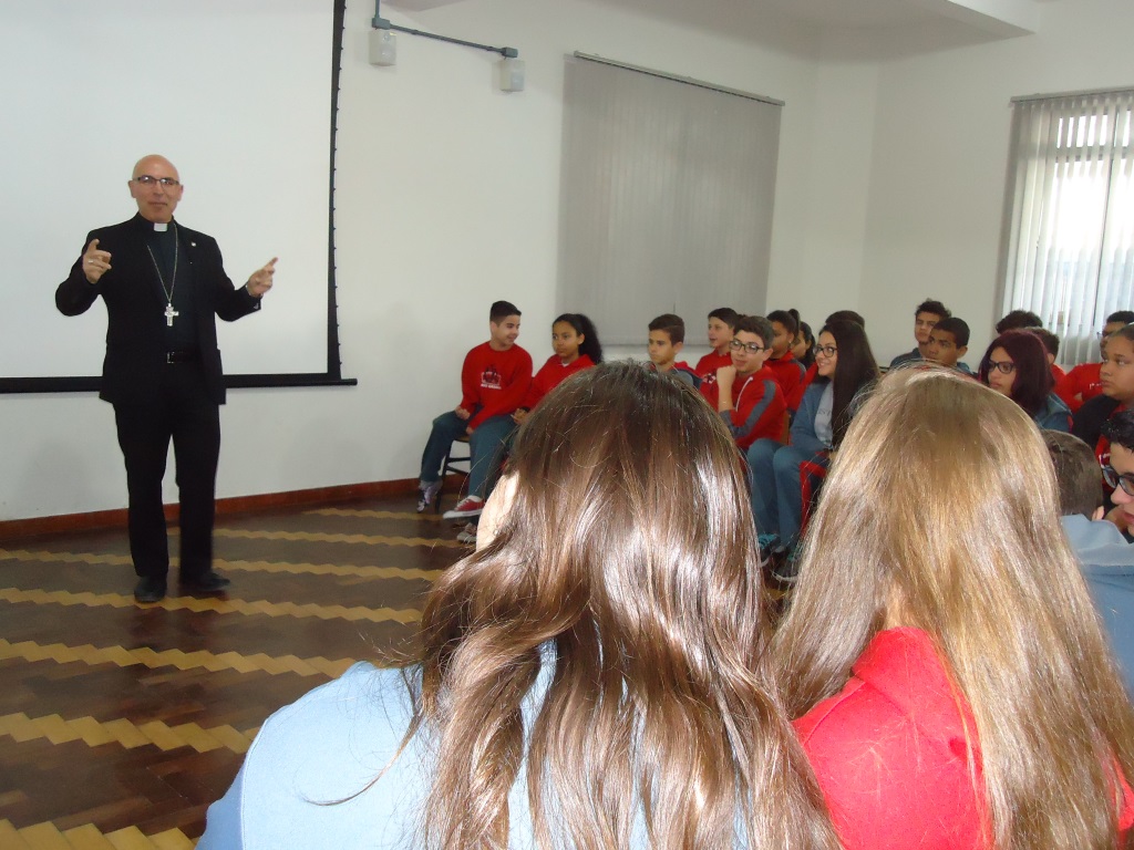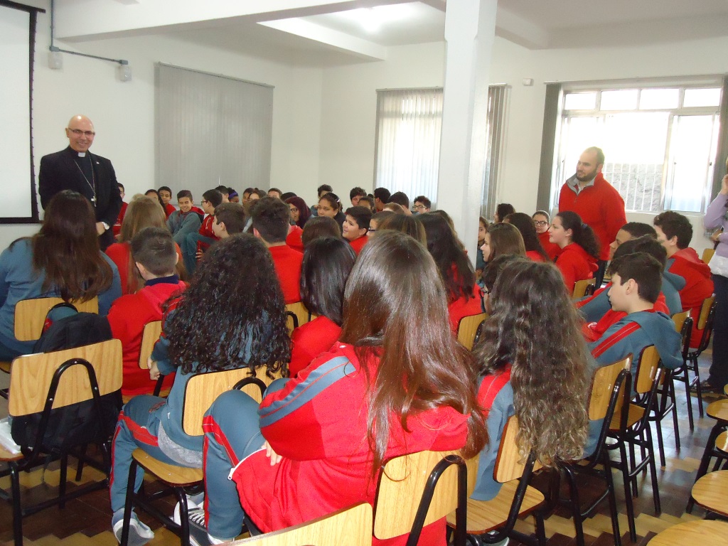 A vinda do Bispo à minha escola, foi uma experiência inédita, nunca pensei que pudesse me sentir tão bem ouvindo pequenas lições de vida de alguém que mal conhecia e pensei que fosse bem diferente. Adorei conhecê-lo e ter trocado 5 palavrinhas com ele. Emilly Reichow Turma 92