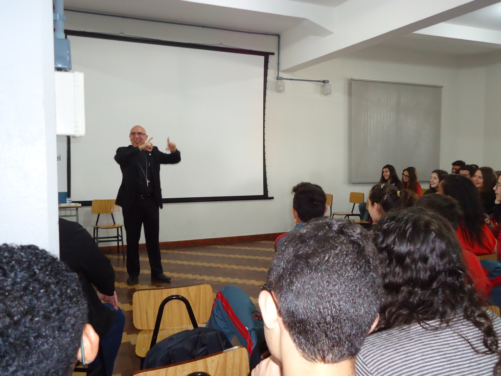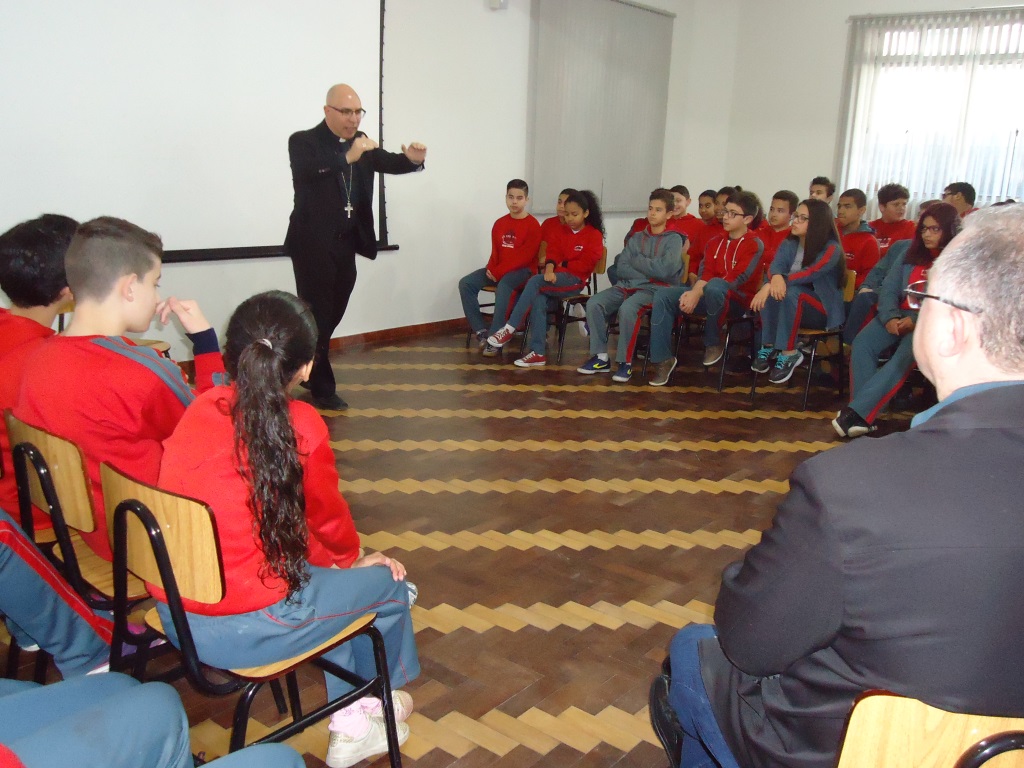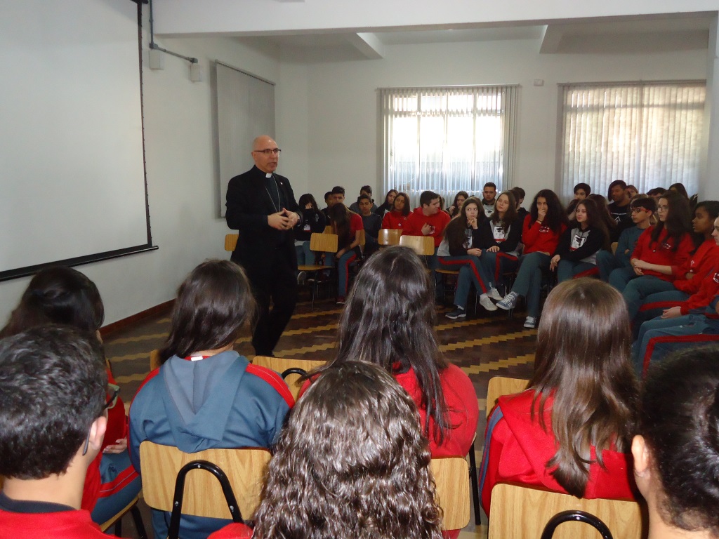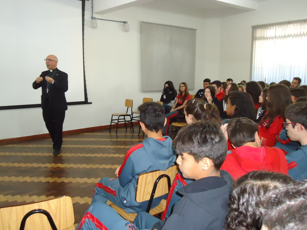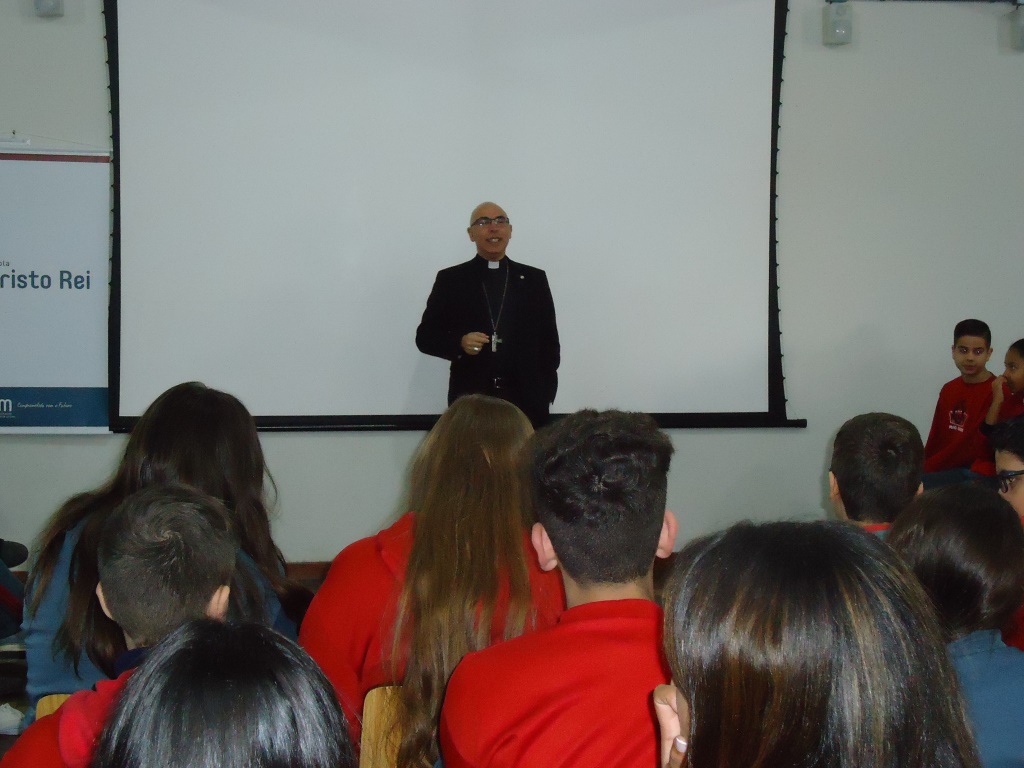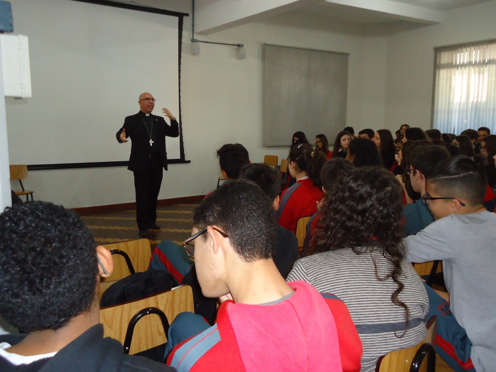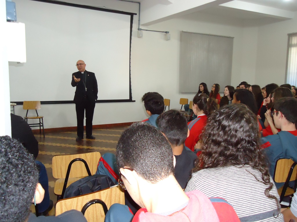 A visita do Bispo para mim foi especial pelo fato de ele me passar seus conhecimentos pois com ele descobri coisas novas sobre sua vida religiosa, achei legal pois falou coisas de incentivo e a todo instante mostrou sua alegria e simpatia. Larissa Lemos Turma 82