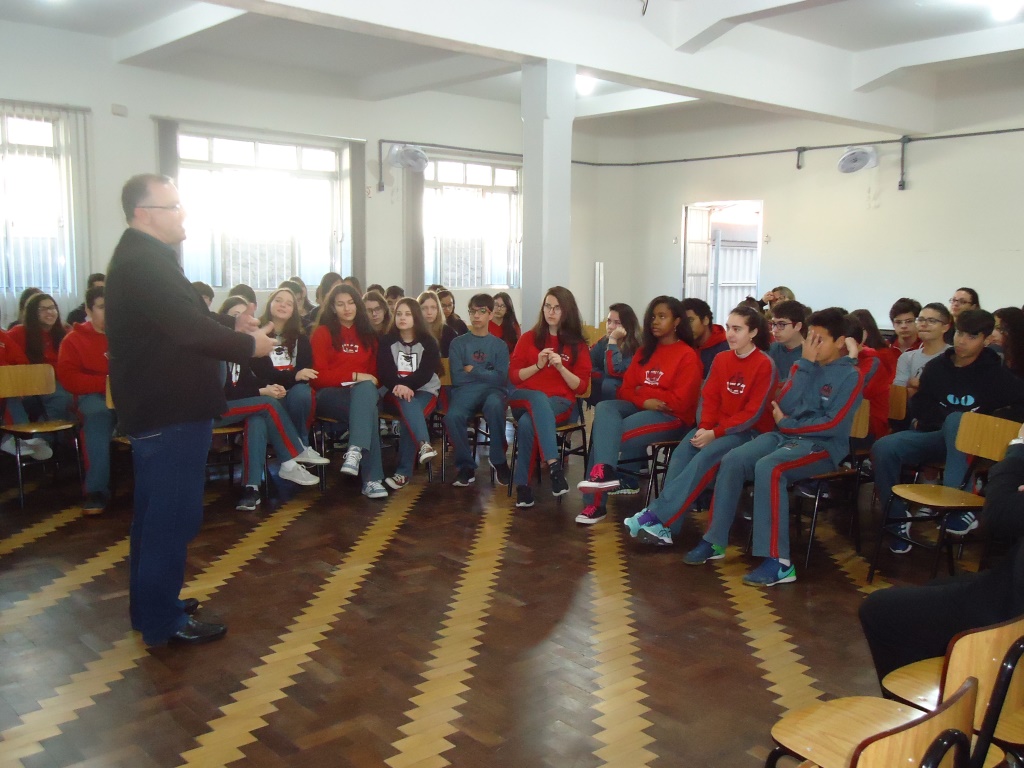 Foi uma experiência muito boa, poder conversar, ouvir o que ele nos falou. Realmente foi incrível esse momento, recebe-lo na nossa escola foi um privilégio, uma honra. E se ele vier novamente, vamos acolher ele da melhor forma possível. Gabrielly Hernandorena Turma 72