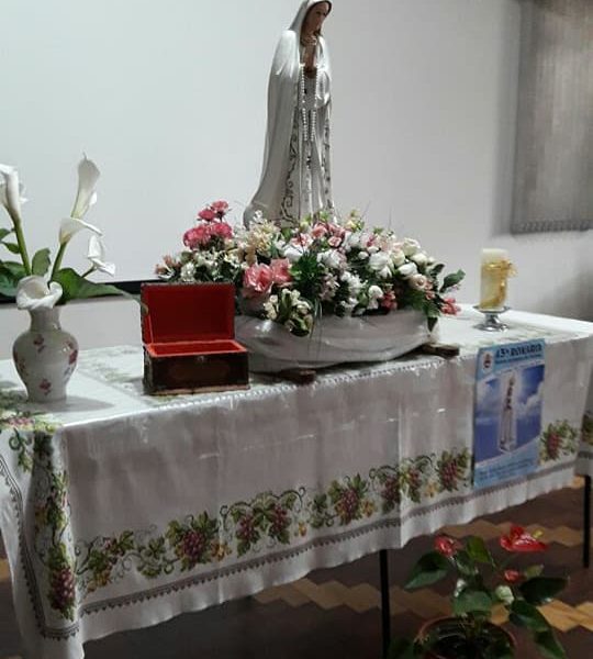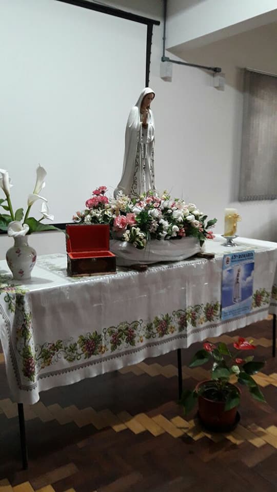 A imagem peregrina de N. Sra. de Fátima visitou a Escola em preparação a 43ª Romaria. A comunidade escolar participou com carinho e devoção dos momentos dedicados a Mãe de Jesus.