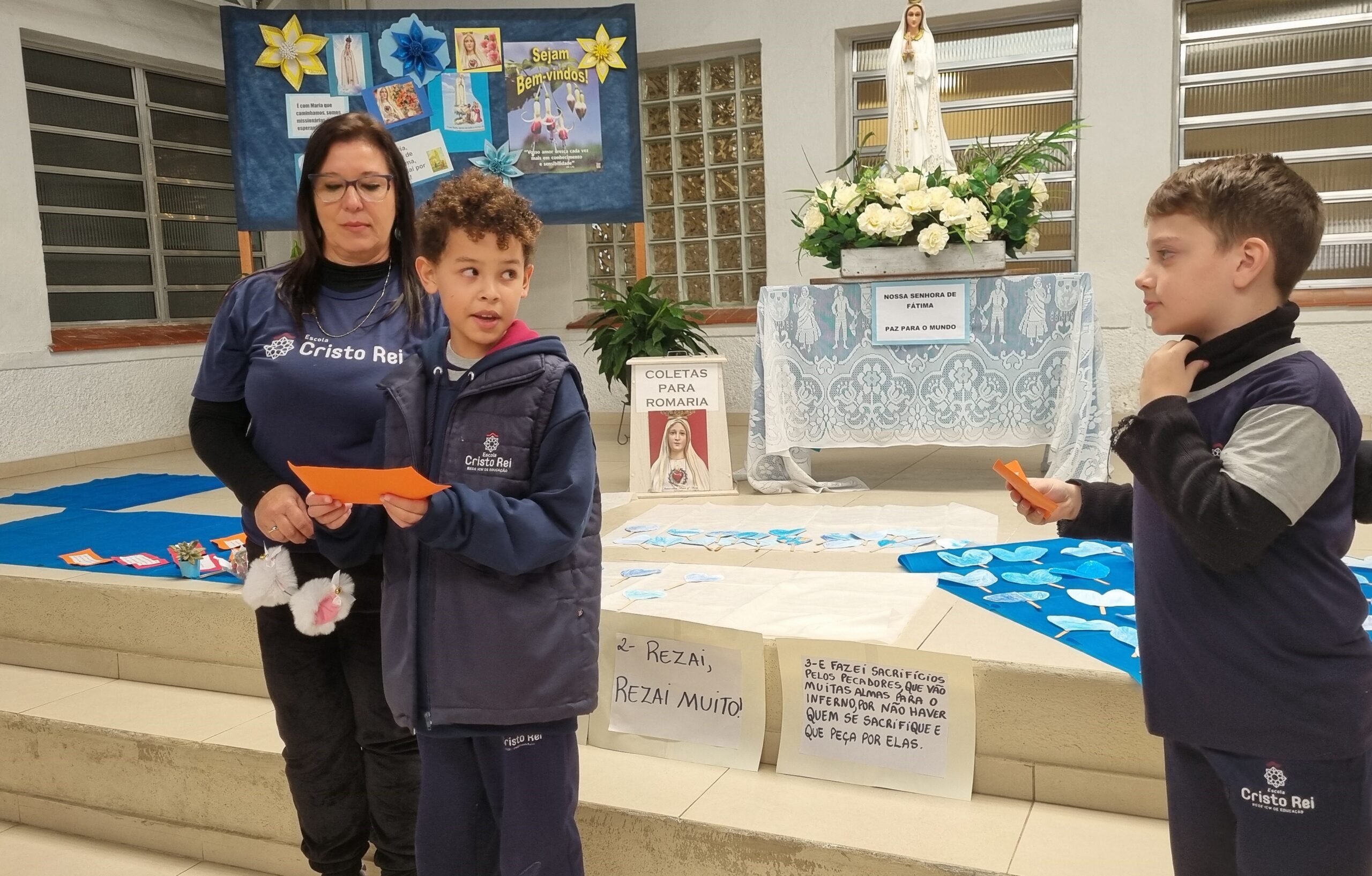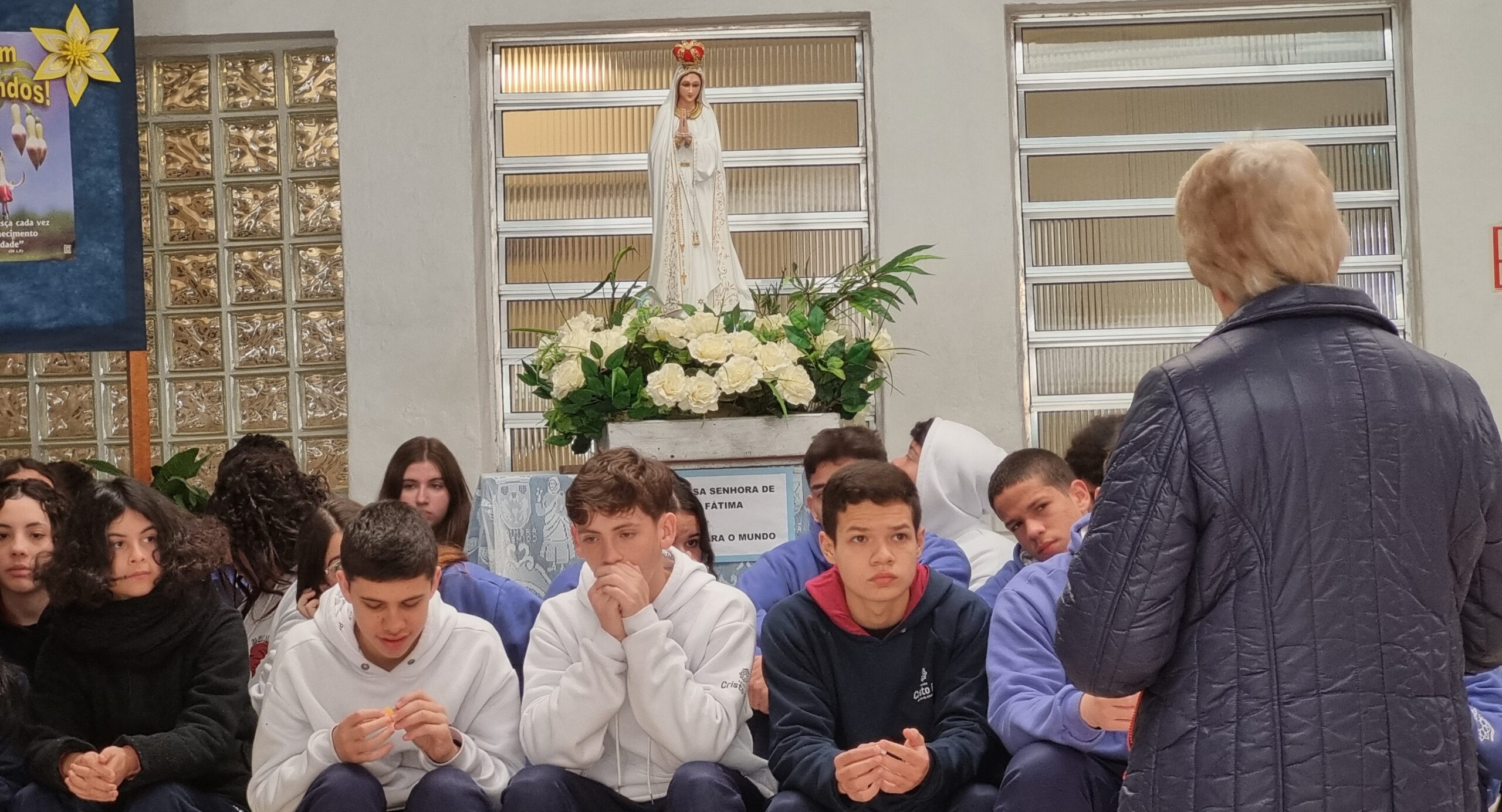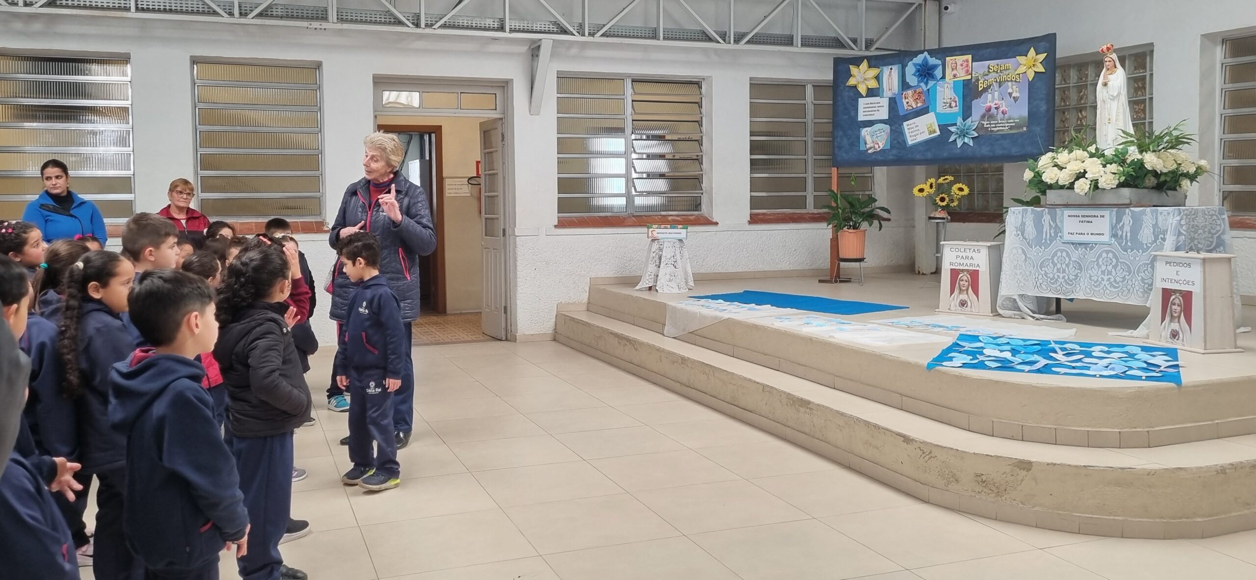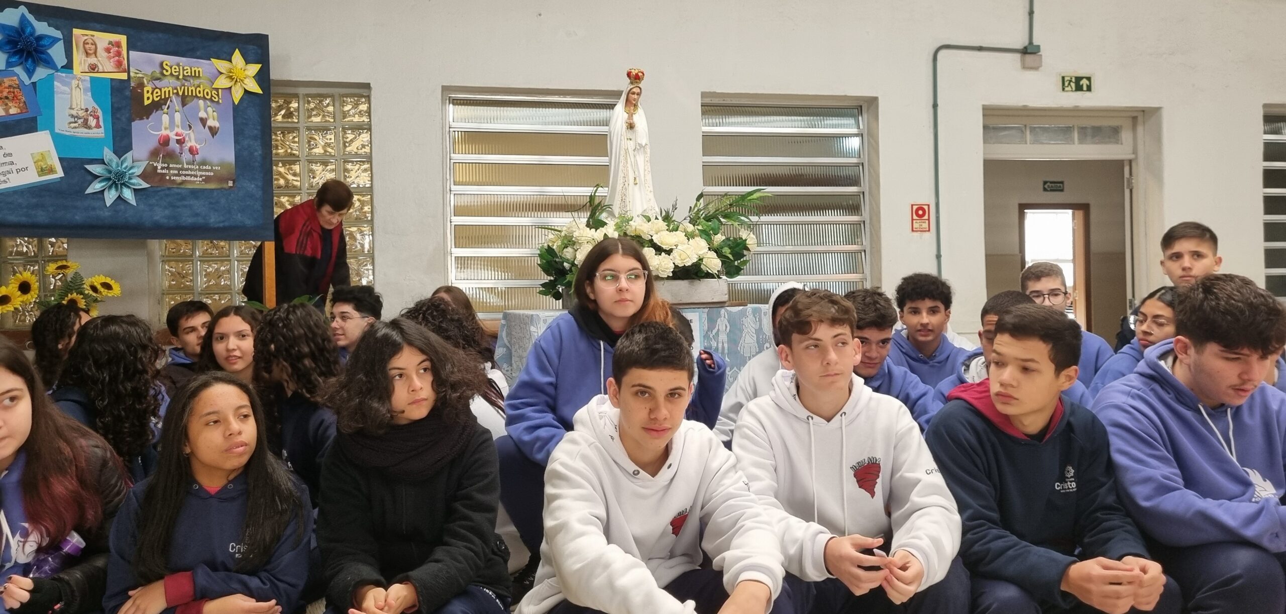 Nossa Senhora de Fátima, originária de Portugal, é venerada pela comunidade católica, conhecida por cuidar dos necessitados e oferecer proteção maternal. A imagem peregrina visitou a Escola Cristo Rei, em preparação para a 50ª Romaria Jubilar Diocesana, juntamente com o Frei Gilberto, sendo recebida com devoção pela comunidade escolar. Acredita-se que ela intercede junto a Jesus Cristo, auxiliando a aliviar dores e doenças, além de guiar no caminho da santidade. Sua devoção a Nossa Senhora e seu coração misericordioso a tornavam uma discípula de Cristo, propagando amor e esperança por onde passava. “Nossa Senhora de Fátima, rogai por nós!”