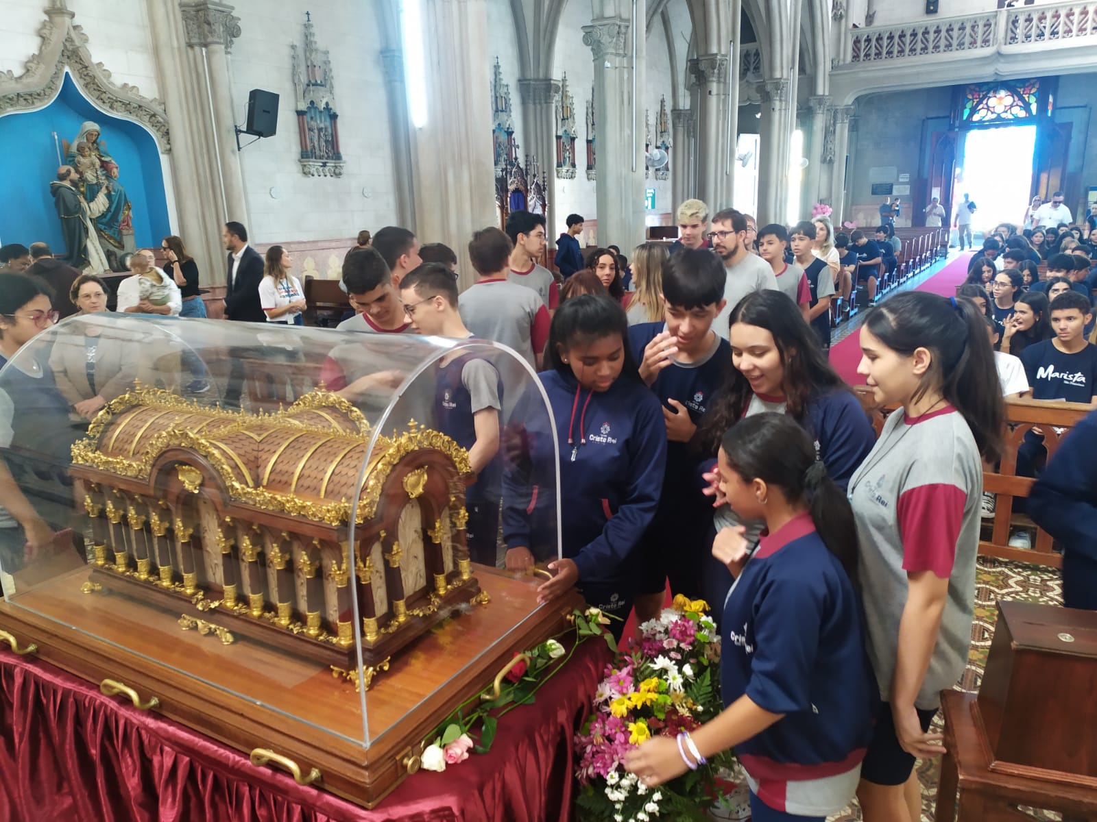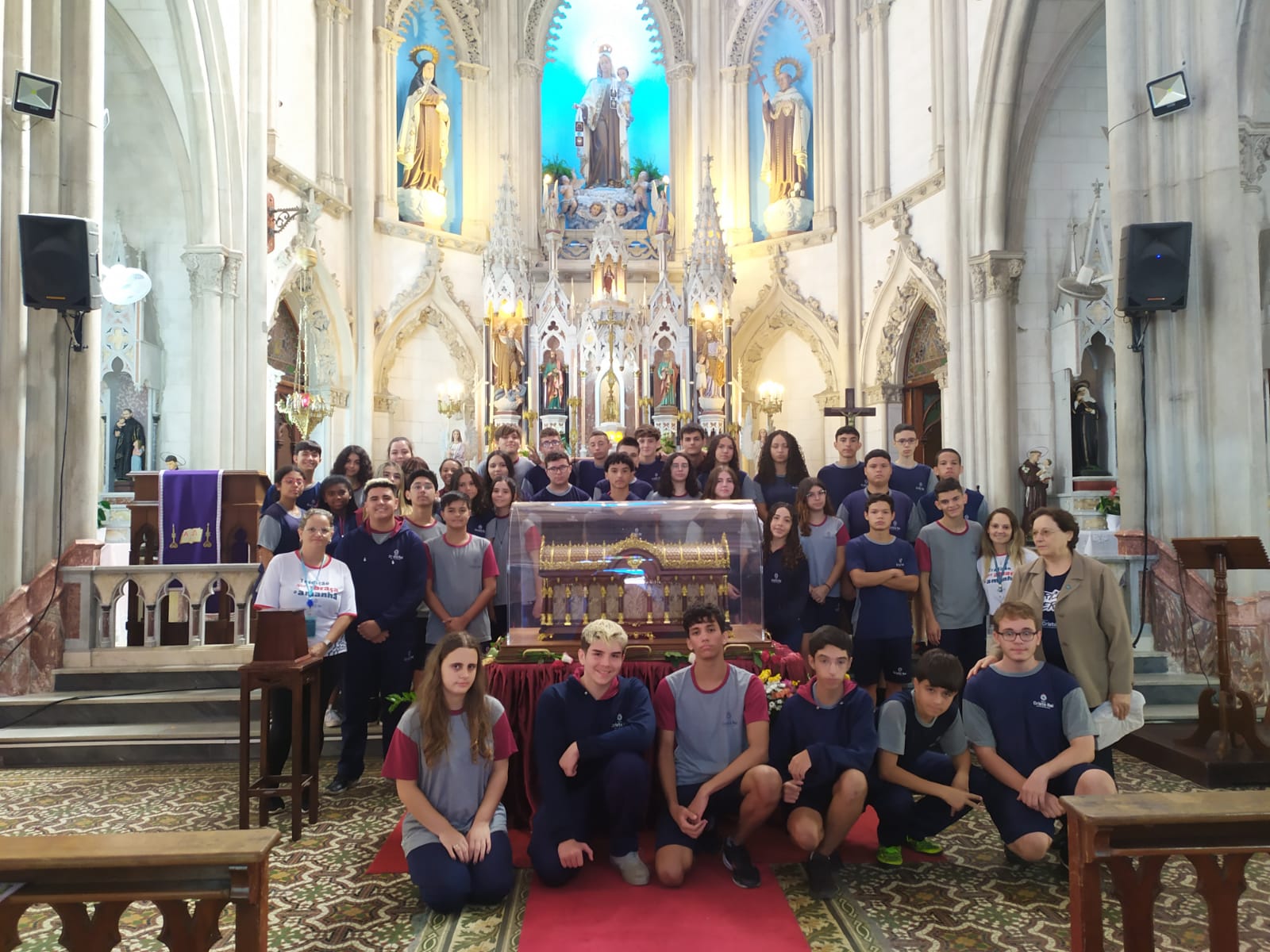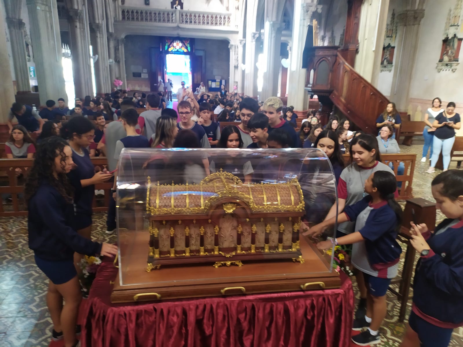 Os estudantes das turmas do 5° e 9°ano da Escola Cristo Rei realizaram uma visitação na Igreja do Carmo. Todos tiveram a oportunidade de conhecer as relíquias da Santa Terezinha do Menino Jesus. Teresa de Lisieux, nascida há 150 anos, escolheu o “pequeno caminho” para ir para o céu. Canonizada apenas dois anos após sua beatificação, muitos milagres são atribuídos a ela.