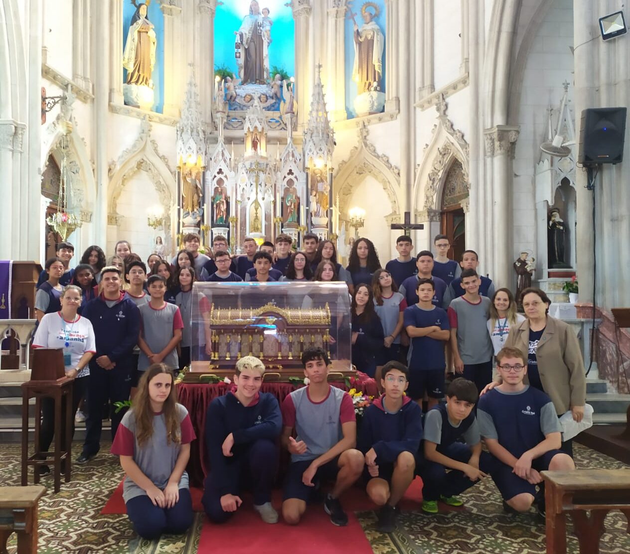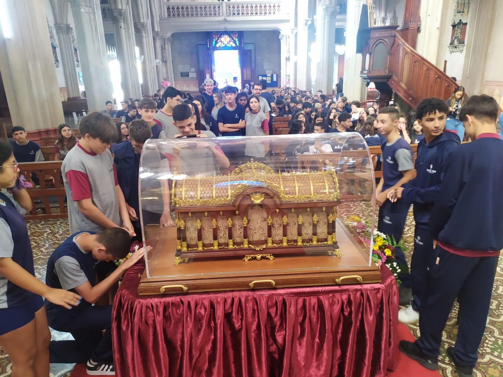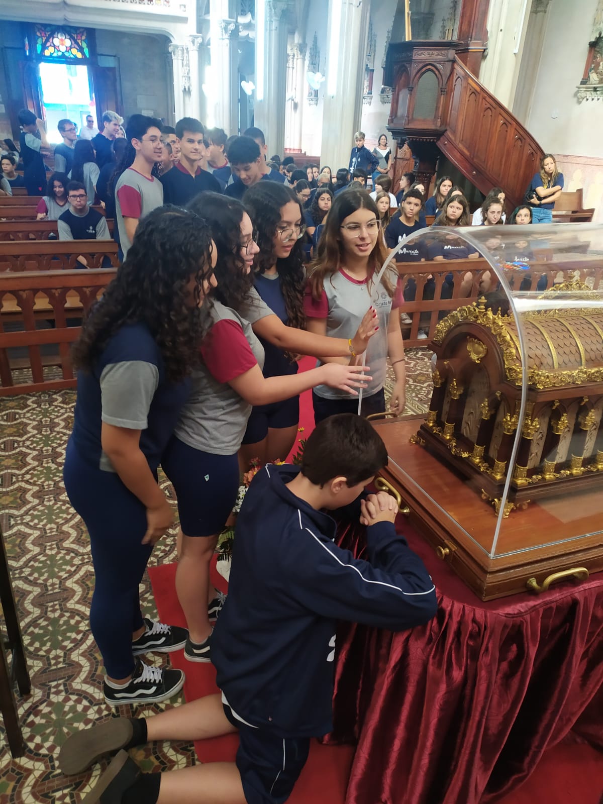 Os estudantes das turmas do 5° e 9°ano da Escola Cristo Rei realizaram uma visitação na Igreja do Carmo. Todos tiveram a oportunidade de conhecer as relíquias da Santa Terezinha do Menino Jesus. Teresa de Lisieux, nascida há 150 anos, escolheu o “pequeno caminho” para ir para o céu. Canonizada apenas dois anos após sua beatificação, muitos milagres são atribuídos a ela.