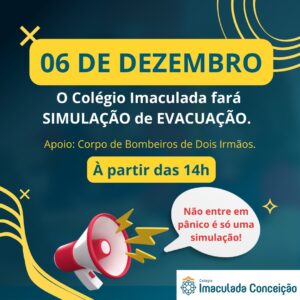Está programado para o dia 6 de dezembro, uma Simulação de Evacuação de Área do Colégio, conduzida pela nossa equipe da Brigada de Emergência.