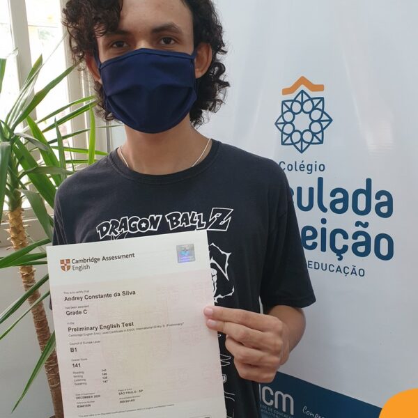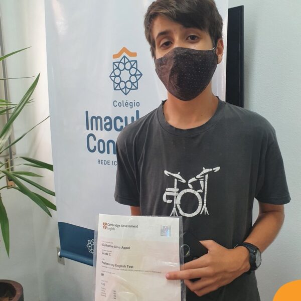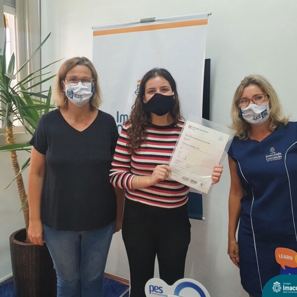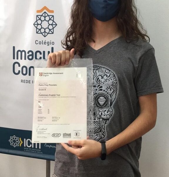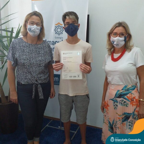 Em dezembro de 2020, seis estudantes do 9º. ano do Imaculada realizaram a prova aplicada pela Winner Led ToPerfetion e obtiveram excelente resultado. Com muita alegria e orgulho, receberam a certificação oficial da Cambridge Assessment English, os seguintes alunos: Andrey Constante da Silva, Arthur Pandolfi Perin, Clara Gianna Kloeckner Guimarães, Guilherme Silva Appel, Jefferson Luís Frota Severo e Pedro Frey Pizzolato.