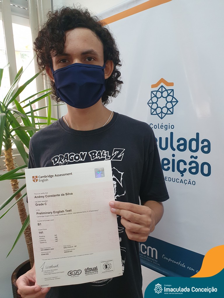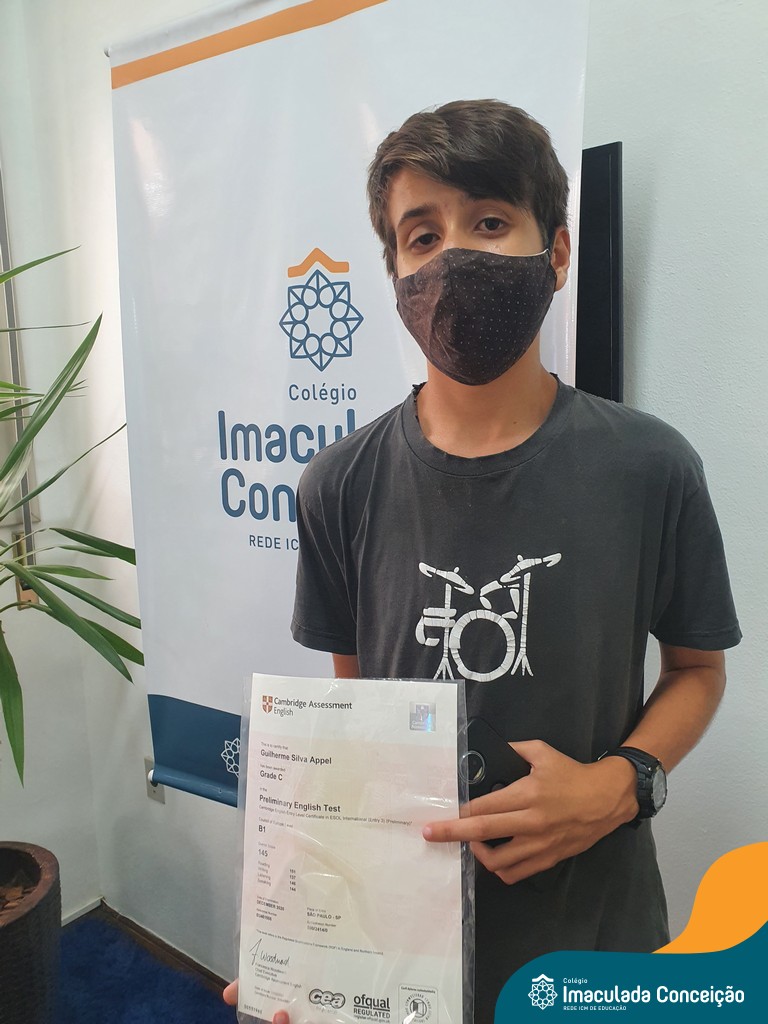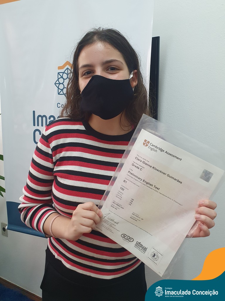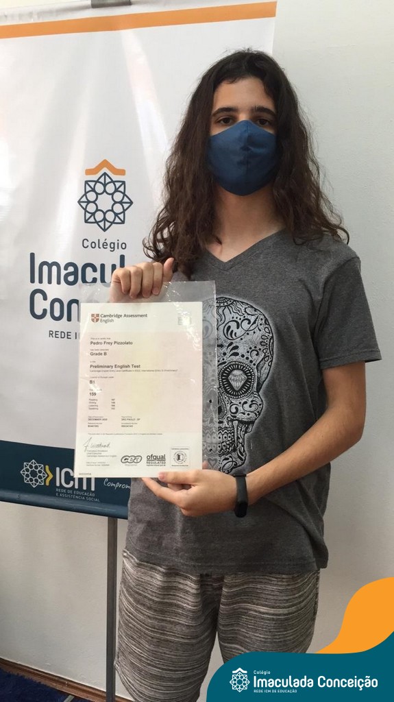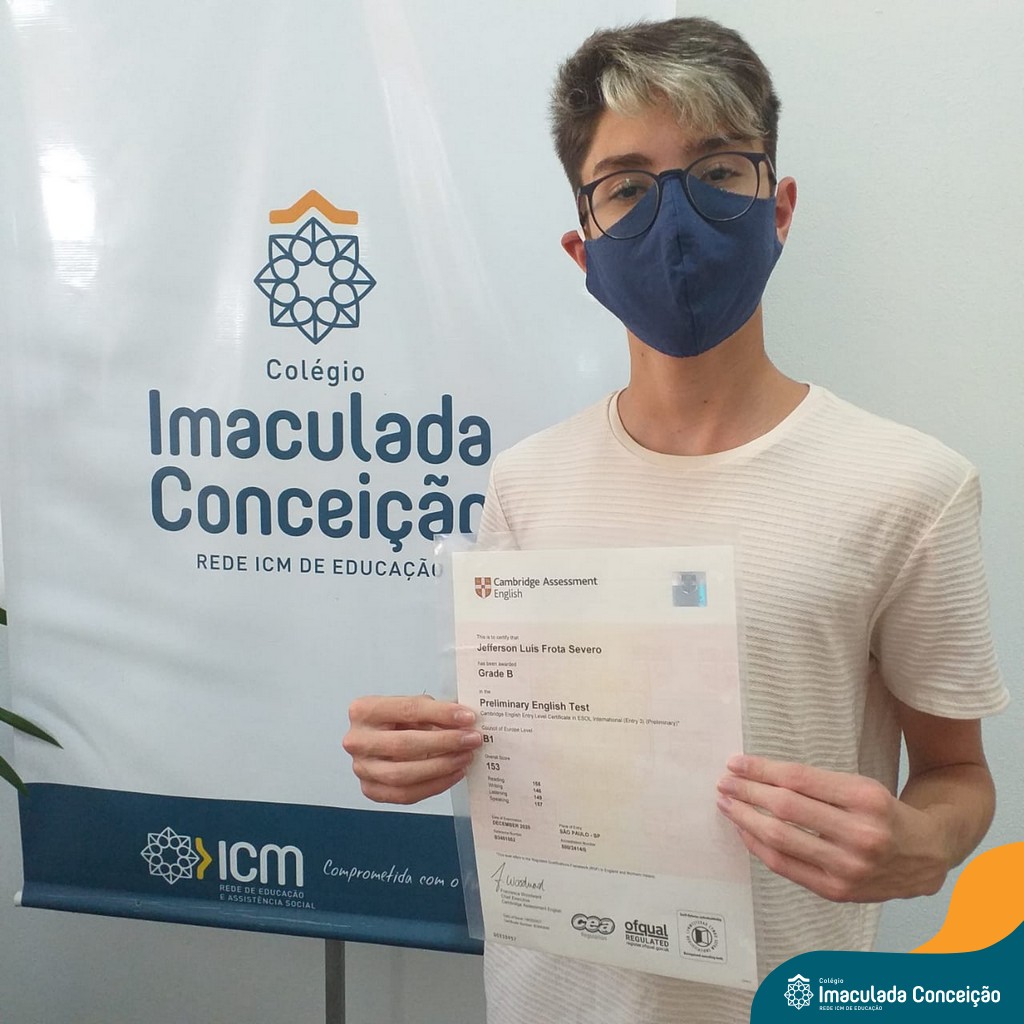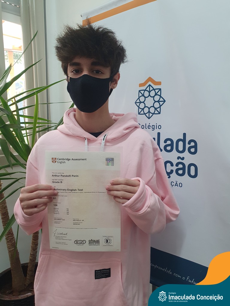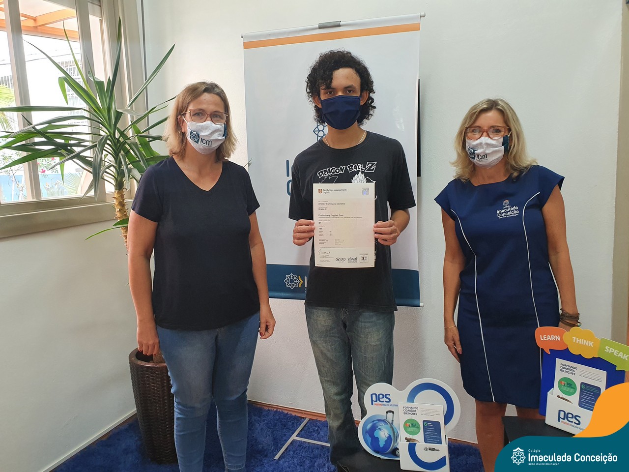 Em dezembro de 2020, seis estudantes do 9º. ano do Imaculada realizaram a prova aplicada pela Winner Led ToPerfetion e obtiveram excelente resultado. Com muita alegria e orgulho, receberam a certificação oficial da Cambridge Assessment English, os seguintes alunos: Andrey Constante da Silva, Arthur Pandolfi Perin, Clara Gianna Kloeckner Guimarães, Guilherme Silva Appel, Jefferson Luís Frota Severo e Pedro Frey Pizzolato.