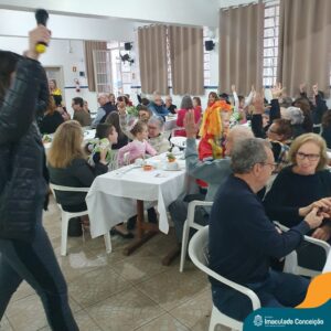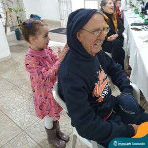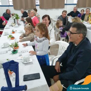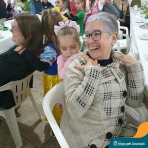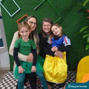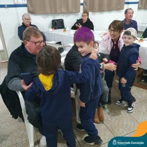 A iniciativa de receber os avós para um chá e realizar apresentações baseadas na história “A menina do Cabelo Roxo em… O chá das Maravilhas”, da autora Léia Cassol, é encantadora. Essa atividade não apenas proporcionou momentos especiais entre os avós e seus netos, mas também promoveu o desenvolvimento da identidade, interação e afetividade dos participantes.