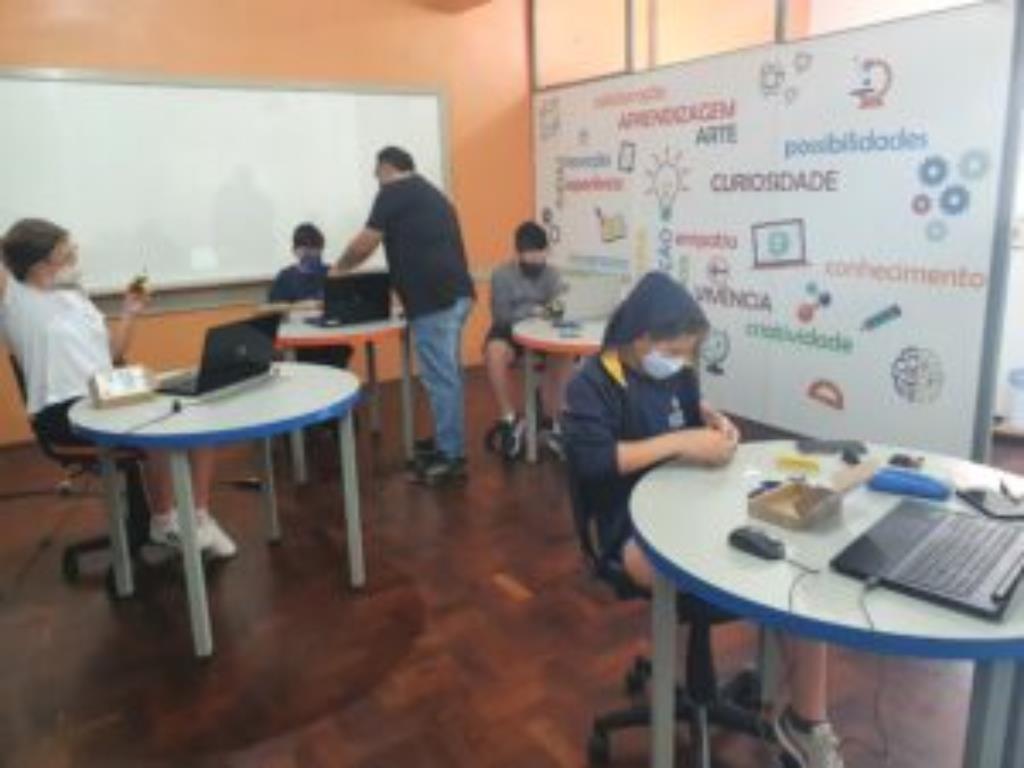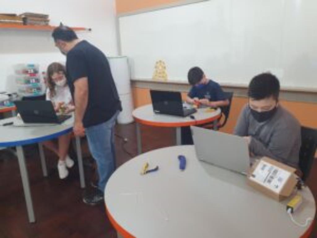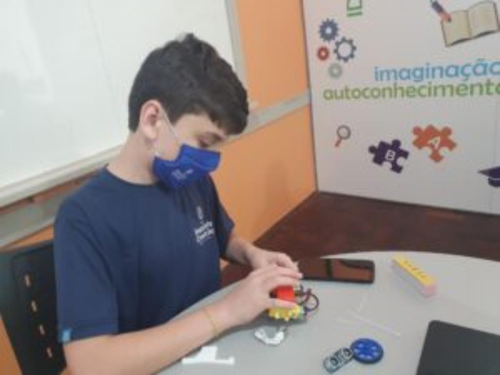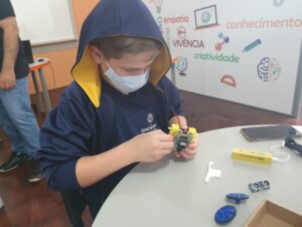 Começou, hoje, curso do Mostrabot: o robô da Mostratec na sua casa! Convidamos, alguns alunos do 4º. e 5º. ano para realizarem, no Colégio, sob a supervisão de João Victor dos Santos Oliveira.