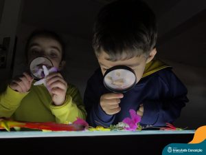 As crianças da turma Pré N1B, da professora Amanda Utzig, iniciaram seu projeto “Detetives dos animais de Jardim”, investigando sobre as borboletas e abelhas. Os alunos descobriram que elas precisam do néctar das flores, tanto a borboleta, para se alimentar e, a abelha, para produzir o mel. A turma colheu algumas flores com as famílias e trouxe para observação das suas diferenças e semelhanças, analisando cada parte minuciosamente. Para finalizar a proposta, as crianças escolheram a flor que gostariam de desenhar, observando cada detalhe.