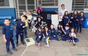 Turma 11, da professora Nina Gabriela Ponne Rodrigues, recebeu de Raquel de Oliveira Enzweiler, uma importante doação para sua campanha de coleta de lixo eletrônico, que servirá como matéria prima para pesquisa do projeto da FEICIC – Feira de Iniciação Científica do Imaculada Conceição.