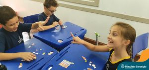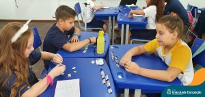 Turma 31, da professora Nina, compondo e decompondo números de três ordens, com um jogo que exigiu concentração e proporcionou muita diversão!