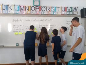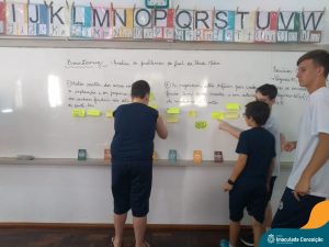A professora de História, Andreia Kich Dessian, trouxe para a turma 71, dois problemas que desestabilizaram o sistema feudal, do final da Idade Média. Os alunos foram desafiados a pensar soluções para esses problemas, seguindo as regras da tempestade de ideias.  Ao final, as ideias foram ligadas àquilo que realmente aconteceu na História: a Formação dos Estados Nacionais.