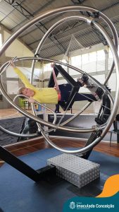 Giroscópio humano: simula os movimentos que um astronauta teria no espaço onde existem três graus de liberdade rotacionais.