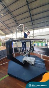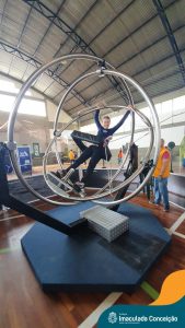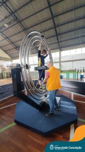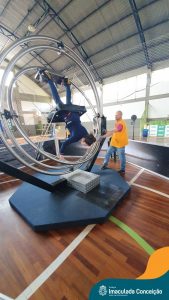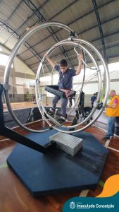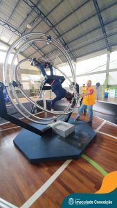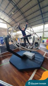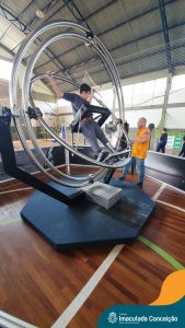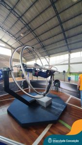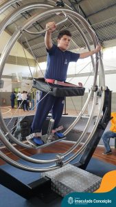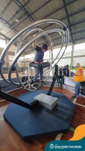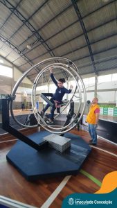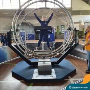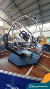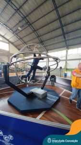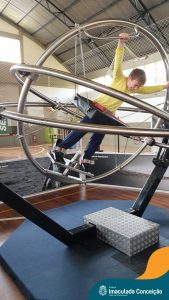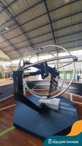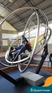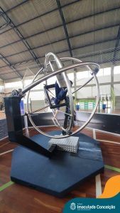 Giroscópio humano: simula os movimentos que um astronauta teria no espaço onde existem três graus de liberdade rotacionais.
