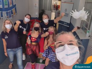 Os alunos da Educação Infantil foram recepcionados por super-heróis. Seguem os registros.