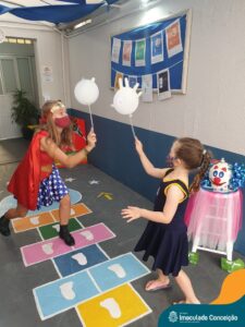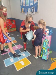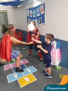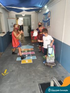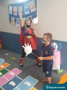 Os alunos da Educação Infantil foram recepcionados por super-heróis. Seguem os registros.