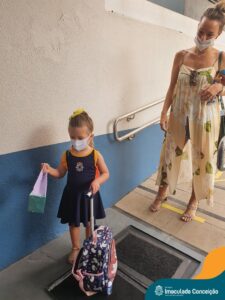 O retorno dos alunos as aulas presenciais foram marcados por muita alegria e entusiasmo. No dia 10.02 iniciaram as turmas dos anos iniciais e no dia 11.02 as turmas da Educação Infantil.