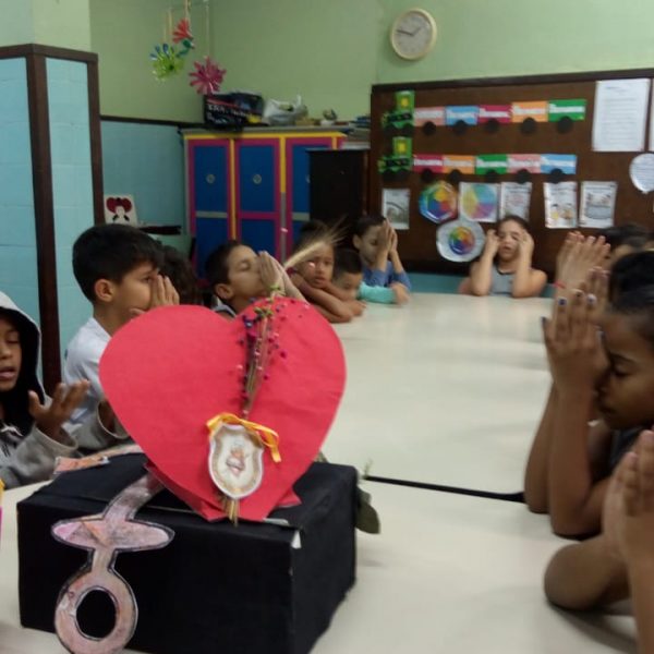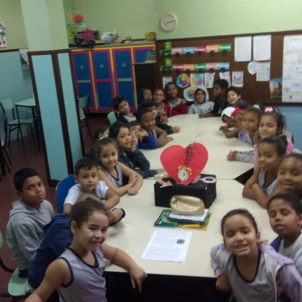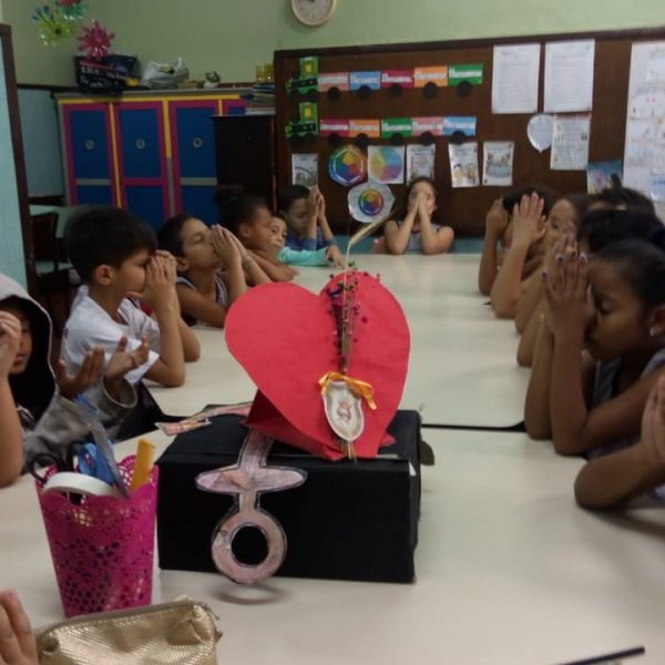 - Com os responsáveis da Unidade foi dinamizada pela tarde, Bárbara Maix foi uma mulher de sublimes valores e como preconizamos a igualdade , intensificamos ainda mais aos símbolos do tríduo – dando espaço para responsáveis exporem sobre os símbolos após ouvir da equipe a quão importância do Bicentenário. – Baú, símbolo da Fé; – Ancora simbolizou a Esperança; – Coração símbolo da caridade; Ações exemplificadas pela fundadora que nos deixou como legado)- Após a abertura partilhamos os lanches que cada um trouxe.