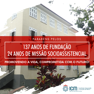 As Irmãs da Unidade do Serviço Socioassistencial do Instituto Imaculado Coração de Maria, junto à direção e os funcionários, tem a honra de agradecer e celebrar a vitória desta semente de amor que foi lançada no decorrer destes vinte quatro anos de existência. Louvamos e bendizemos a Deus, por tantas bênçãos derramadas neste chão fertil do Instituto Imaculado Coração de Maria, onde a vida é cuidada.