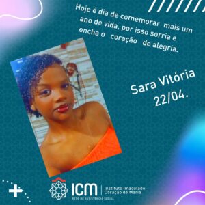 Querida Sara Vitória, estamos em festa com você, por isso, passeie, ria e seja muito feliz.