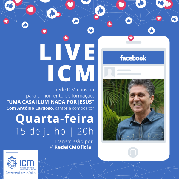 Dia 15/07 às 20 h, na REDE ICM o Cantor e Compositor – Antônio Cardoso – Live. Convidamos todos a Fortificar a fé “Uma Casa Iluminada por Jesus.