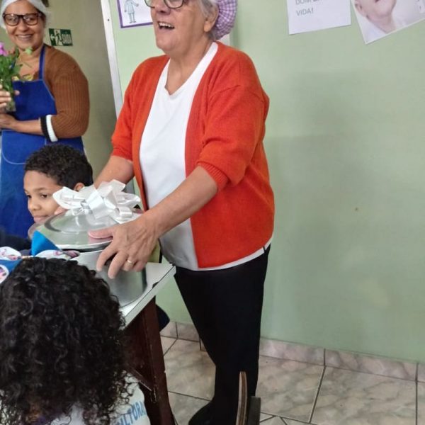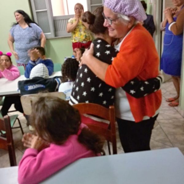 Os assistidos a homenagearam e a parabenizaram. Marlene emocionou com as felicitações das crianças de ambos turnos (manhã/tarde), assim como dos colaboradores e irmãs.