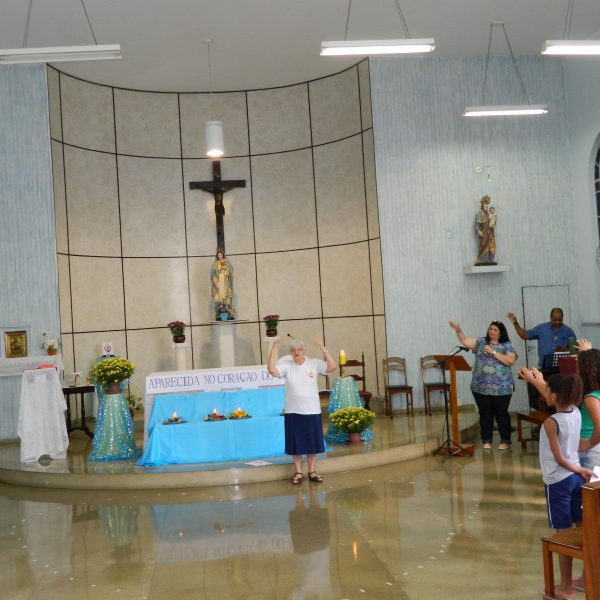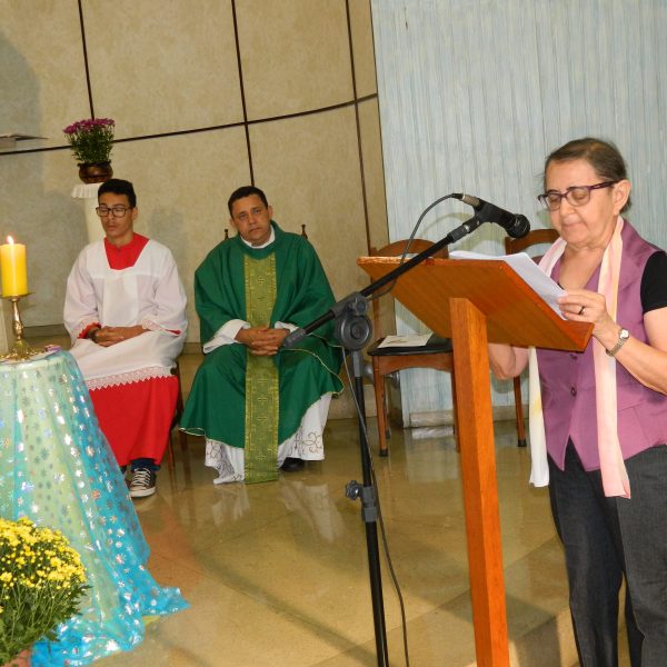 Reunimo-nos na Capela para a Celebração Eucarística do Encerramento do Mês Missionário e Ano Mariano Com os usuários da Unidade de Serviço Socioassistencial, as 8h da manhã.