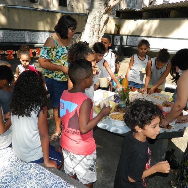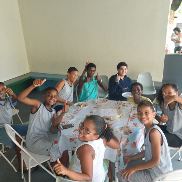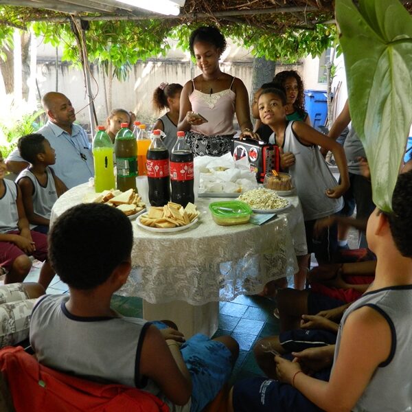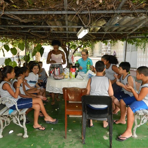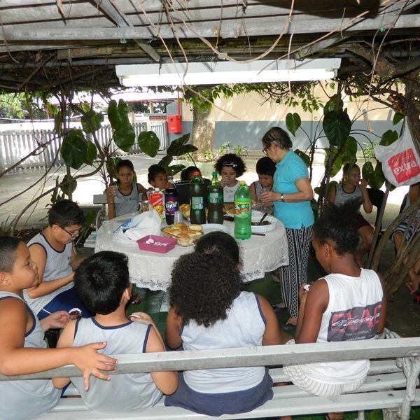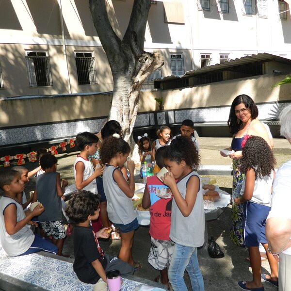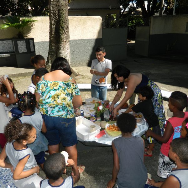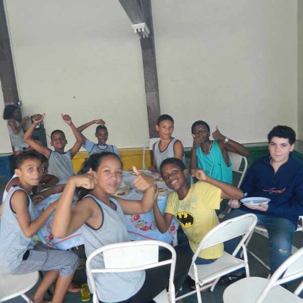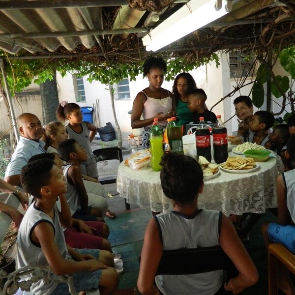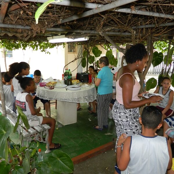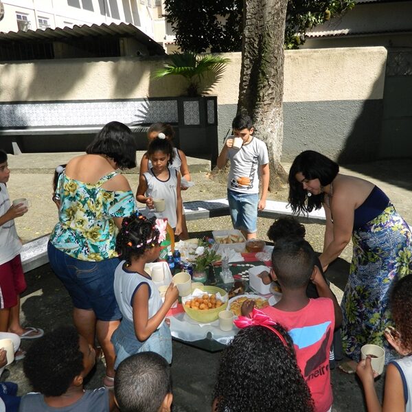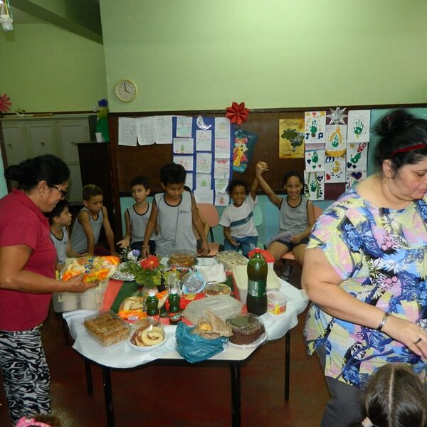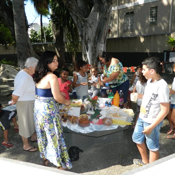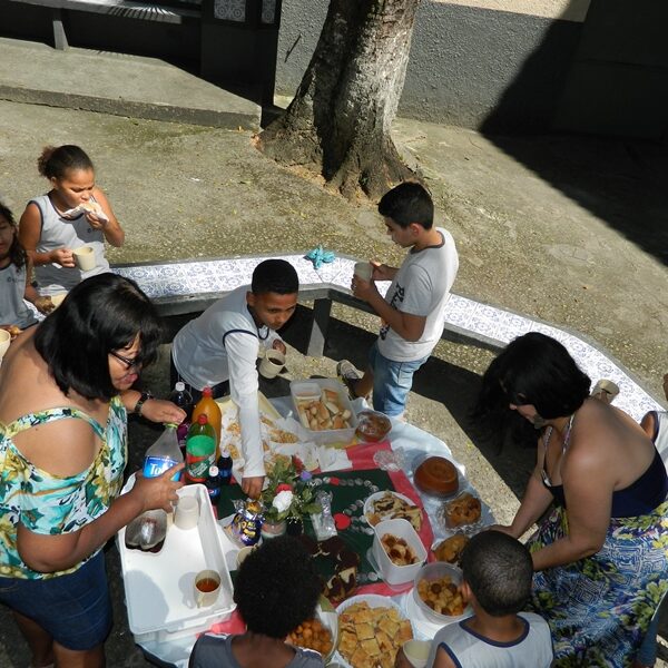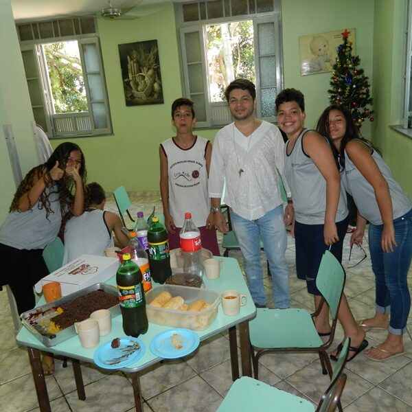 Culminou com a partilha. Usuários trouxeram alimentos para partilharem com os Educadores, Funcionários, Irmãs e demais crianças / adolescentes.