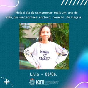 Querida Lívia, estamos sentindo cheirinho de bolo vindo da cozinha. Parabéns para você!