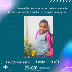 Querida Layla, a cada inspiração de hoje agradeça, ao dom da Vida. Feliz Aniversário!