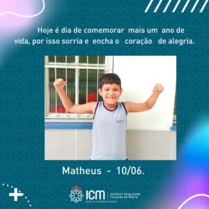 Querido Matheus, o dia esta festivo, és uma criança amada por seus familiares e por nós. Feliz Aniversário!