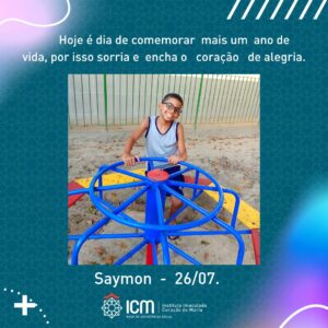 Querido Saymon, desejamos um dia cheio de vida, com festa , e saúde em dose dubla.