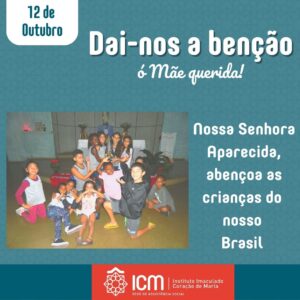 Nossa Senhora Aparecida nos ensina a amar e nos relembra que nunca estamos sós. Maria é Mãe e exemplo de cuidado com as crianças. Neste dia 12 de outubro, celebramos o Dia da Rainha e Padroeira do Brasil e o Dia das Crianças. Que o amor da Boa Mãe toque nossos corações e nos ajude na missão de formar cidadãos comprometidos com o futuro.